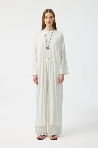 Modal Cupra Trousers Blouse Abaya Set Ecru