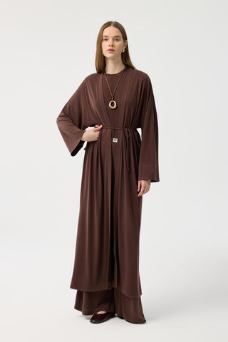 Modal Cupra Wide Pleated Trousers Midi Abaya Set Brown