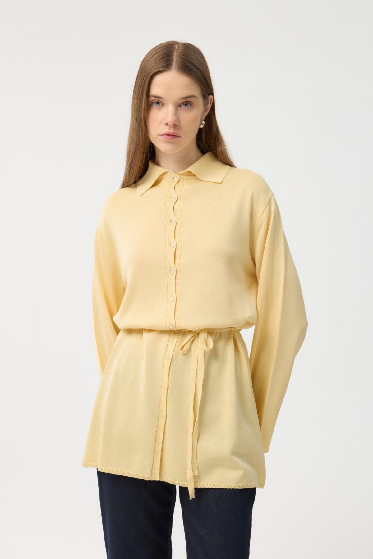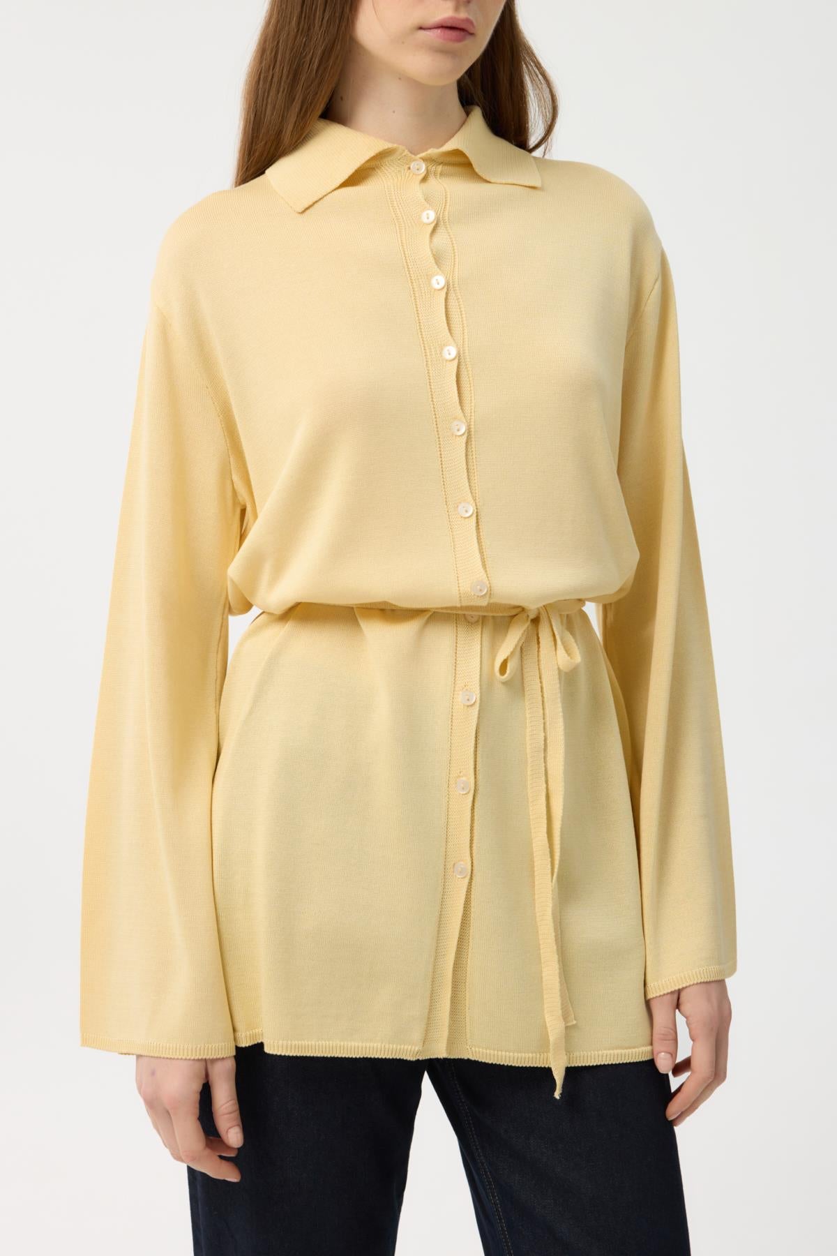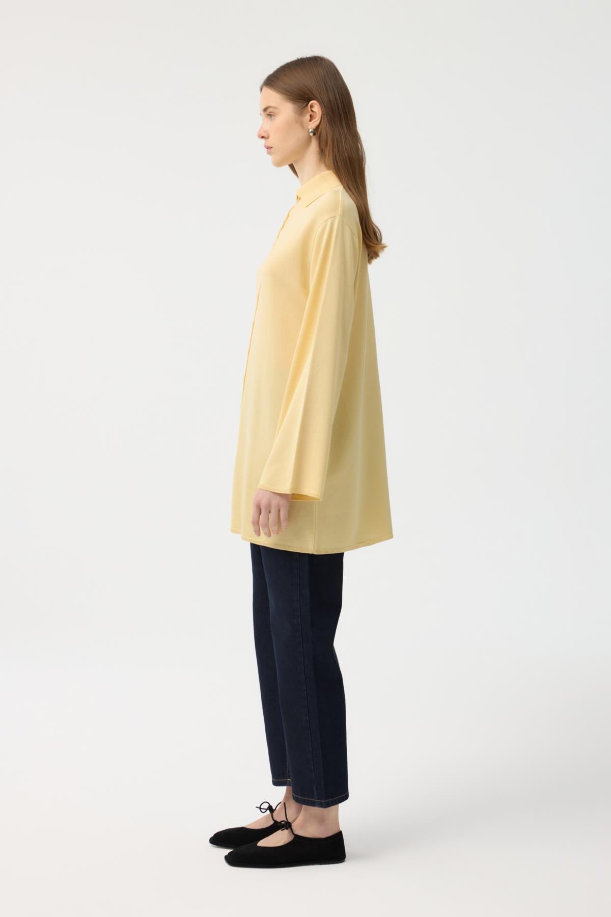 Button Front Lightweight Knit Cardigan Yellow