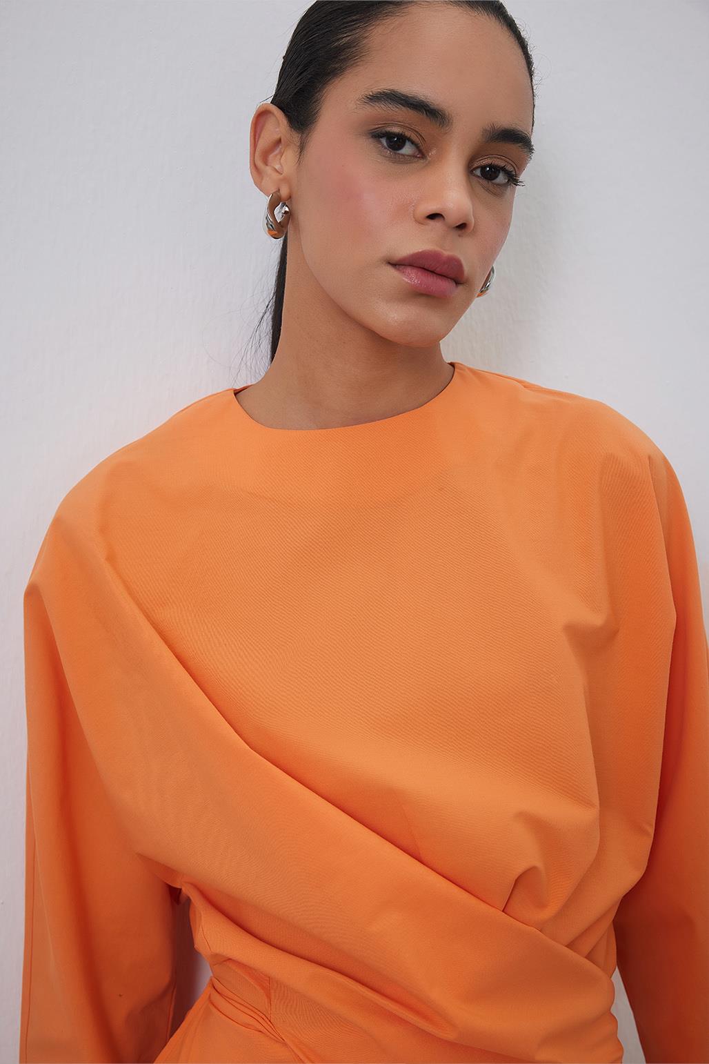 Loas Poplin Tied Wrap Tunic in apricot, combines comfort with versatility, making it a staple item in any wardrobe. It's simple and minimalist design makes it a standout piece. Crafted from soft poplin fabric known for its comfort, durability, and matte finish, this tunic conforms to various body shapes with its molded form. The tie detail accentuates the waist, allowing for a personalized fit. Despite its simplicity, it's the perfect choice for those seeking both style and comfort.