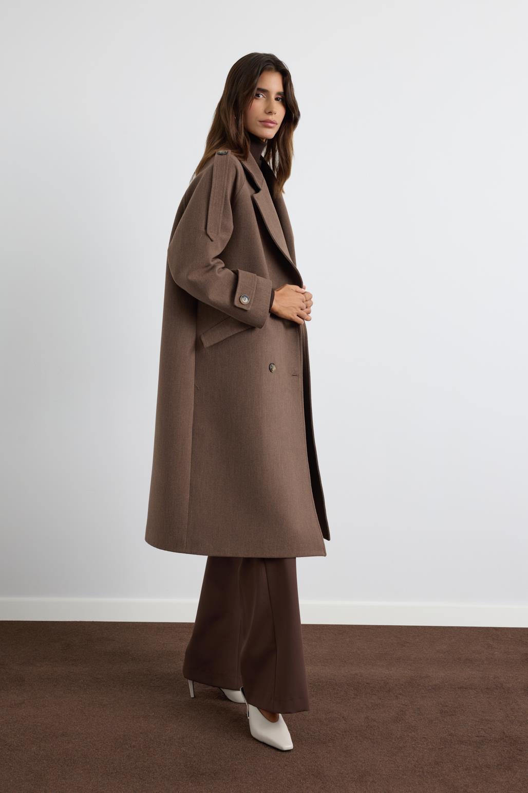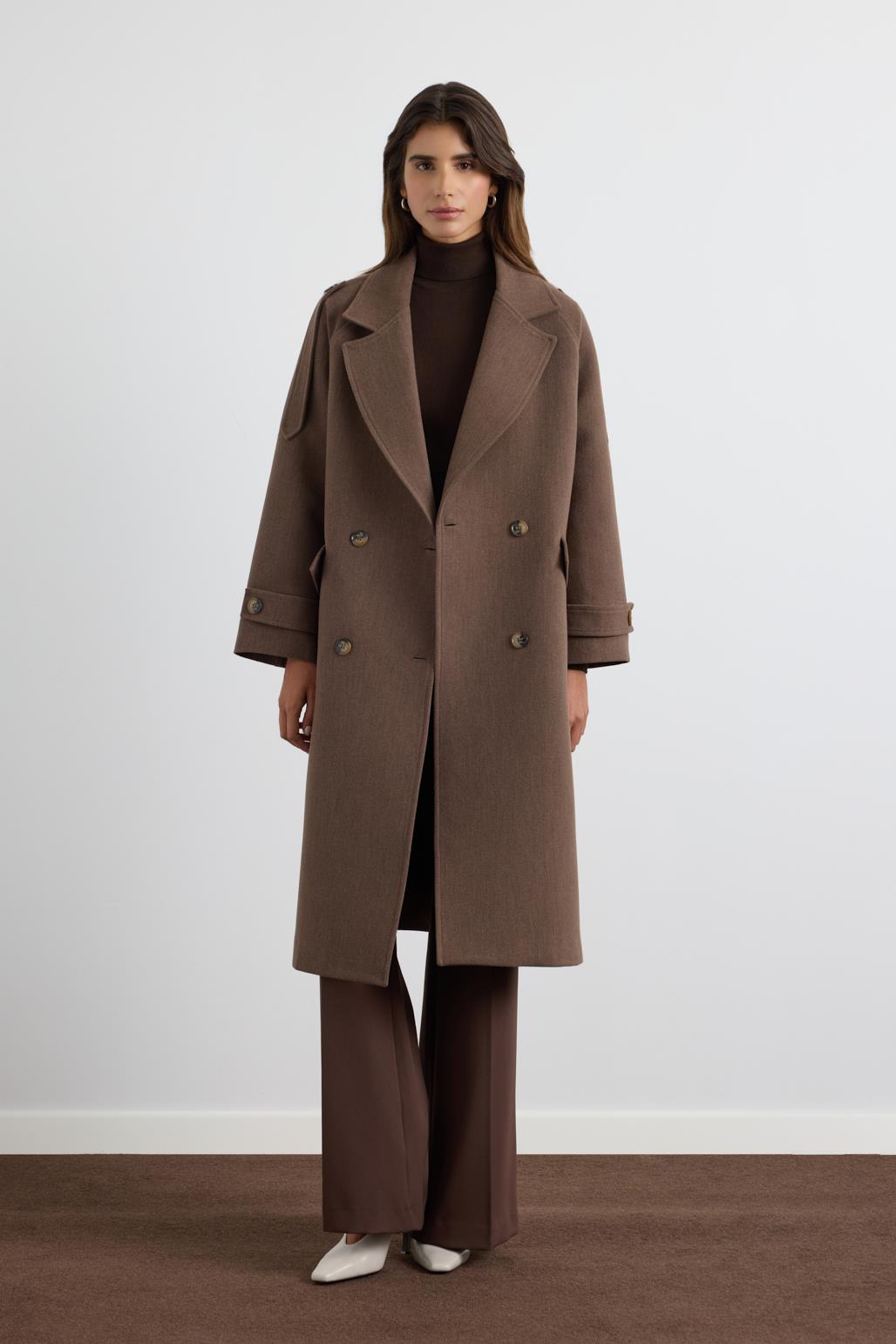 Double Bust Wool Coat with Epaulet Details Dusty Brown
