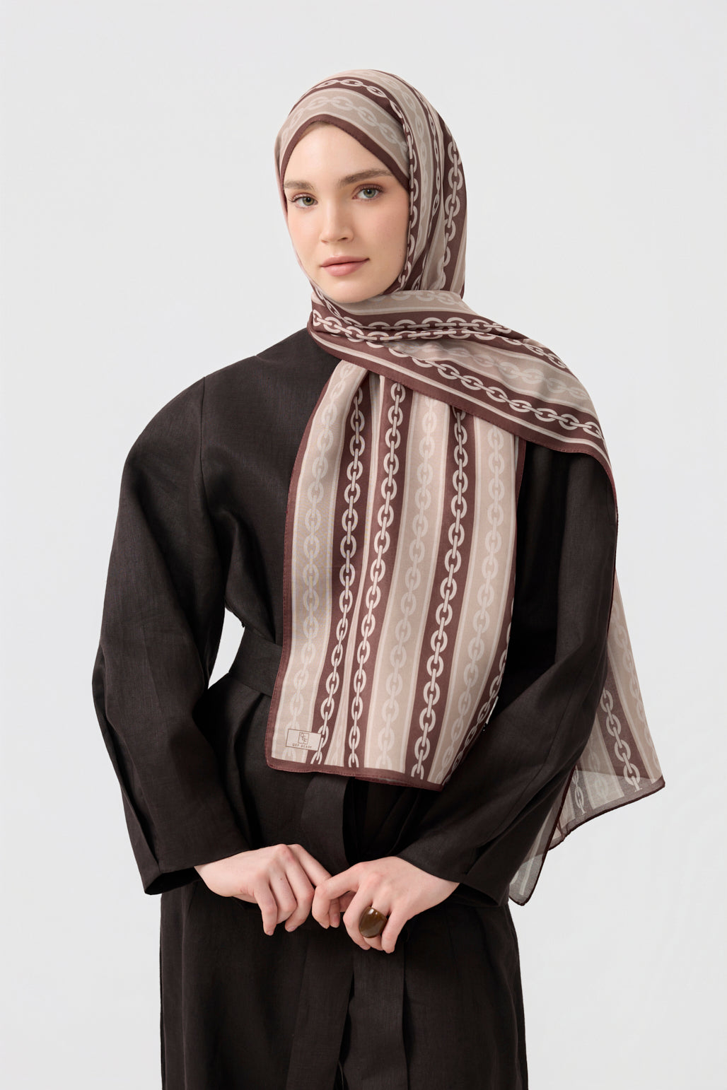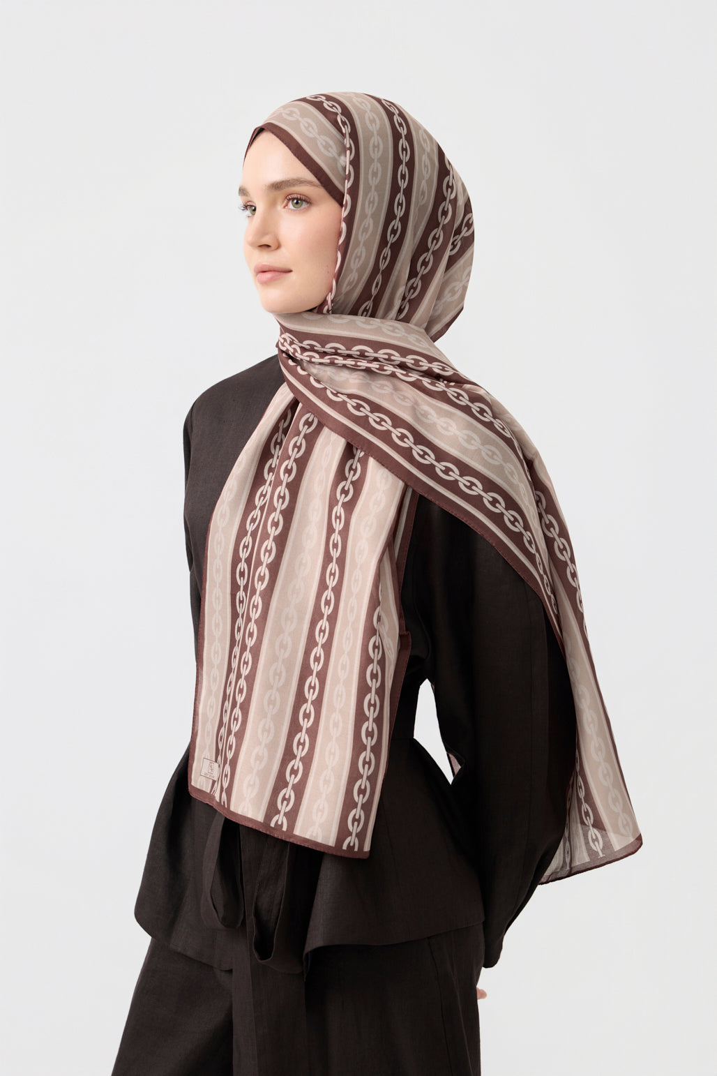 The Chain Motif Cotton Twill Scarf features a modern chain-pattern design that elevates your style, combining elegance with a comfortable wearing experience thanks to its firm yet flowing twill texture. Made from high-quality cotton, its lightweight and breathable fabric gently touches the skin, offering a fresh feeling all day. The Chain series offers carefully selected colors that suit every taste and style, adding dynamism and sophistication to your outfits. Its non-slip and easy-to-style structure ensures practical use, while the 70x185 cm dimensions accommodate various wrapping styles, making it a versatile choice. Perfect for daily wear or special occasions, this shawl, with its fine details and superior craftsmanship, is poised to become a staple in your wardrobe.