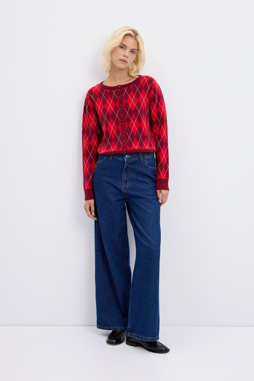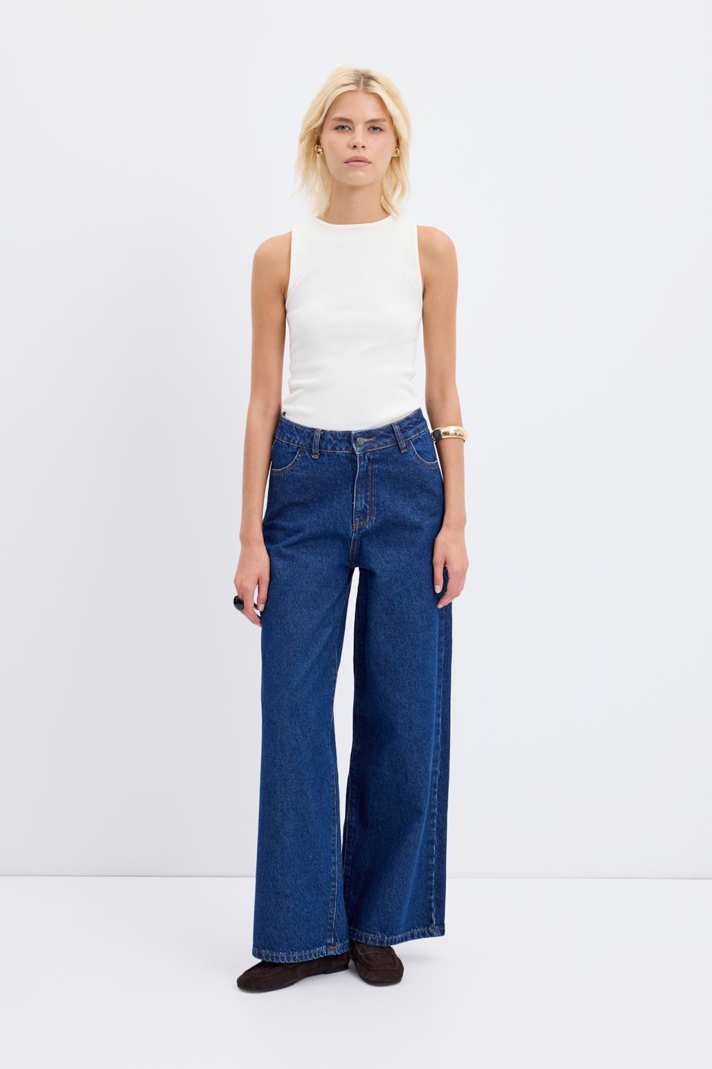 High Waist Wide Leg Gabardine Trousers Dark Blue