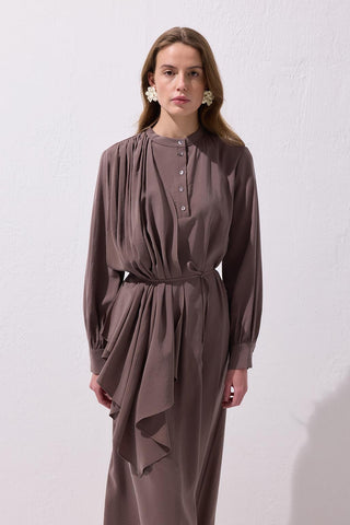 Fleur Tie-Front Viscose Maxi Dress Brown