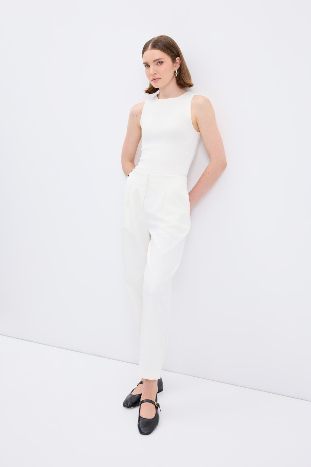 Waist: High waist with pleat detailing