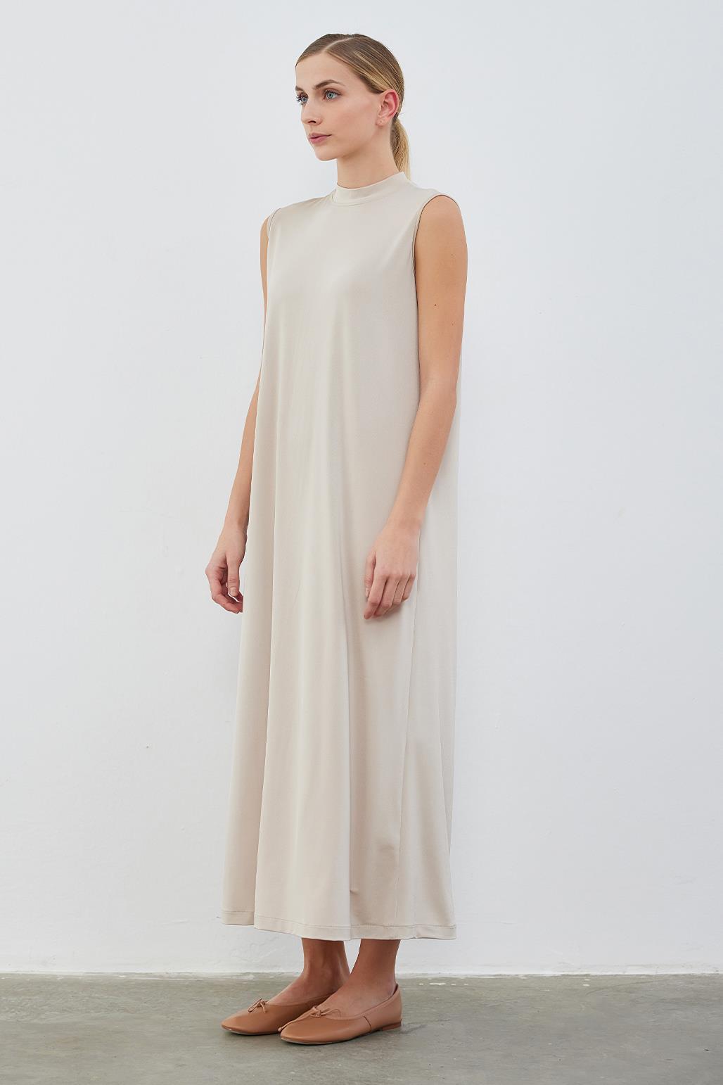 Silk Knitted Sleeveless Dress Beige