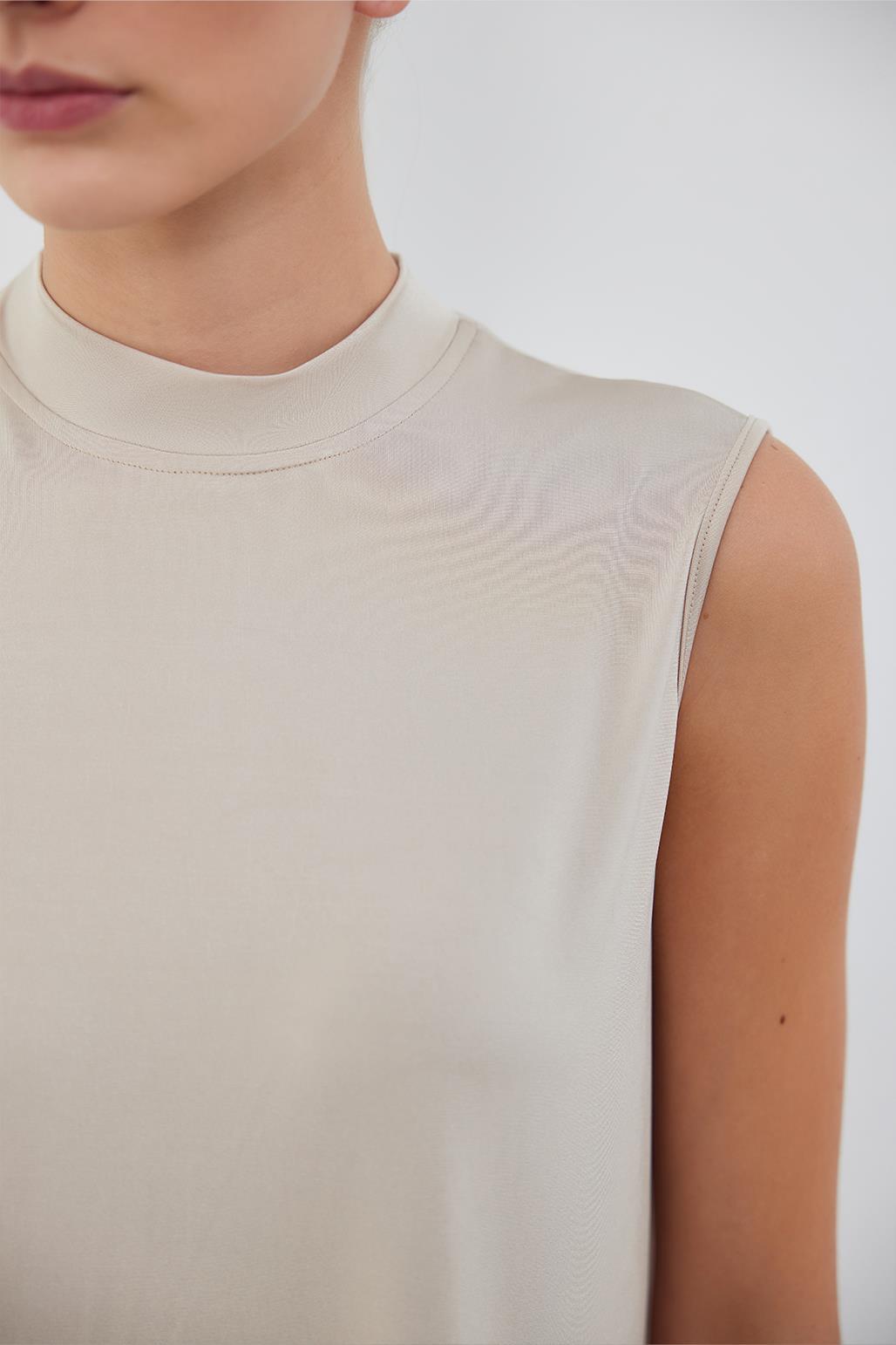 Crew neck, sleeveless, straight cut, comfortable fit.