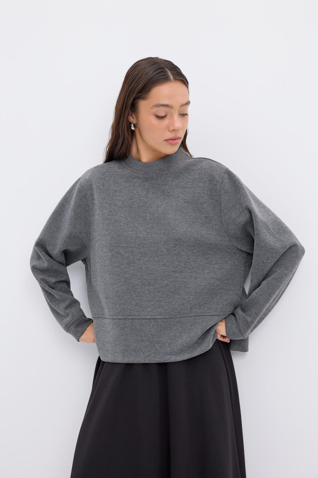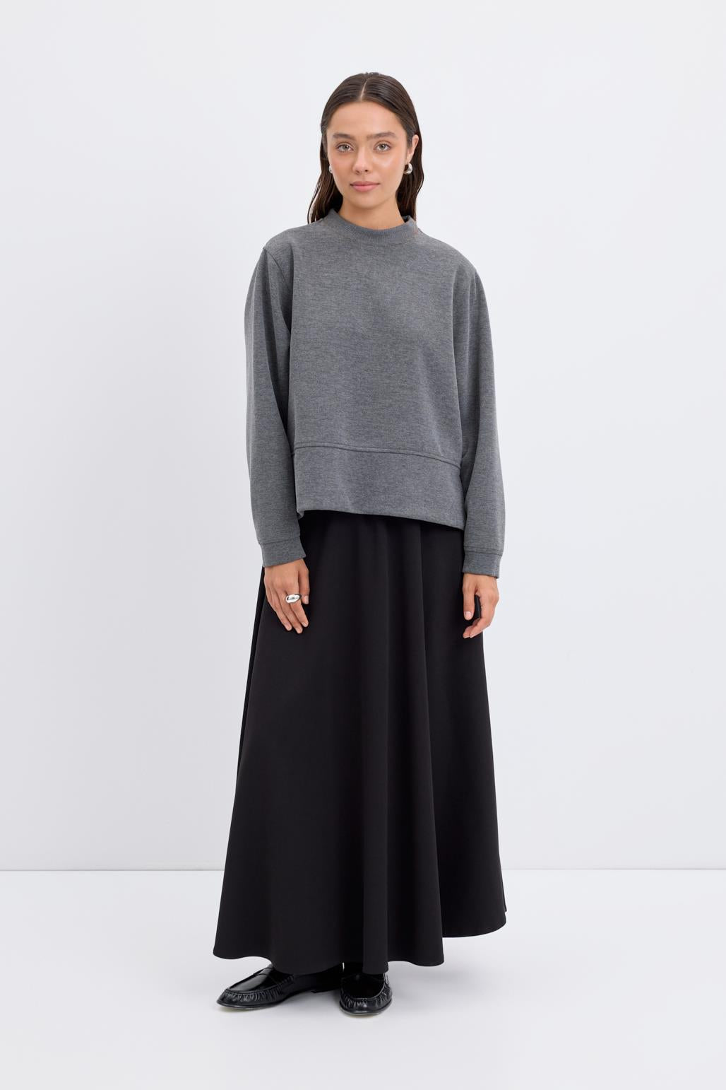 The Oversize Side Slit Cropped Sweatshirt offers a structured yet comfortable fit with its double-face interlock fabric. Its contrasting ribbed neckline and wide hem made from the same fabric add a dynamic touch to the design. Side slits provide ease of movement, while the cropped and oversized silhouette creates a modern shape. This sweatshirt is an ideal choice for styles that prioritize comfort without compromising on look.