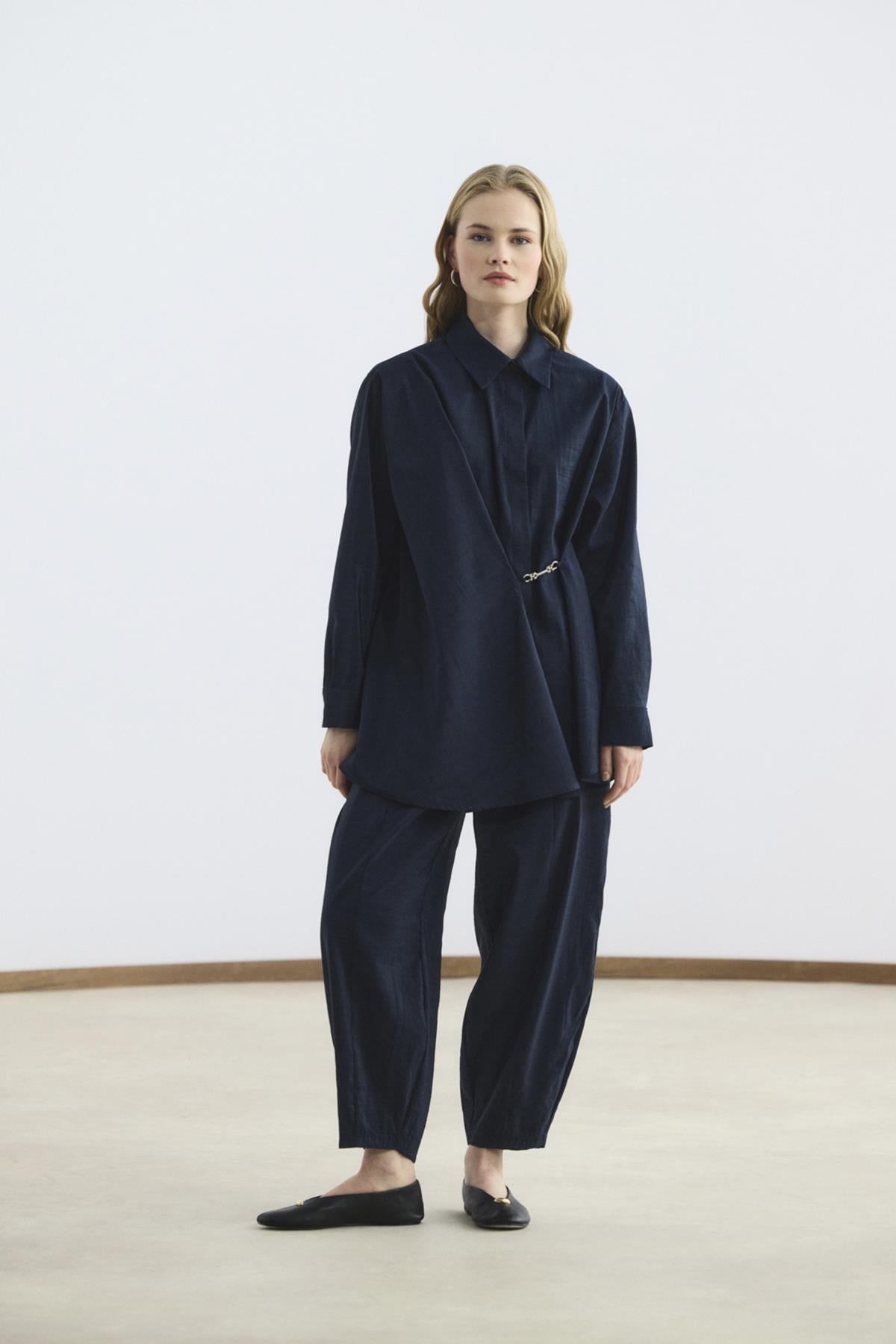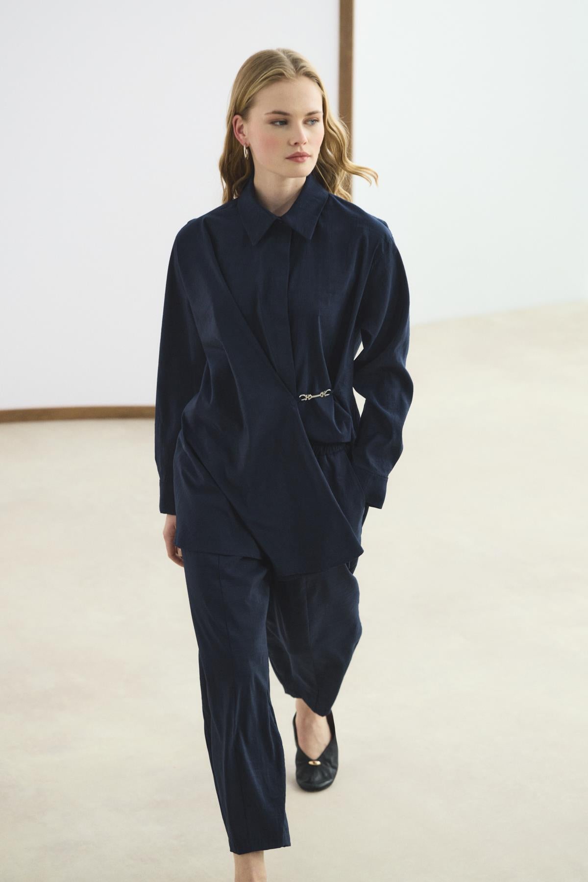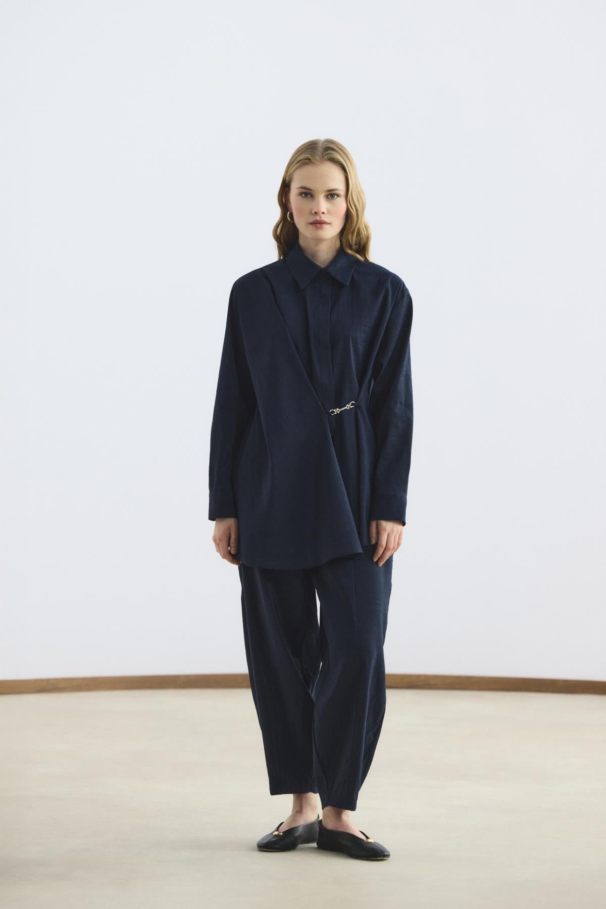 Buckle Detail Wrap Shirt Trousers Set Navy