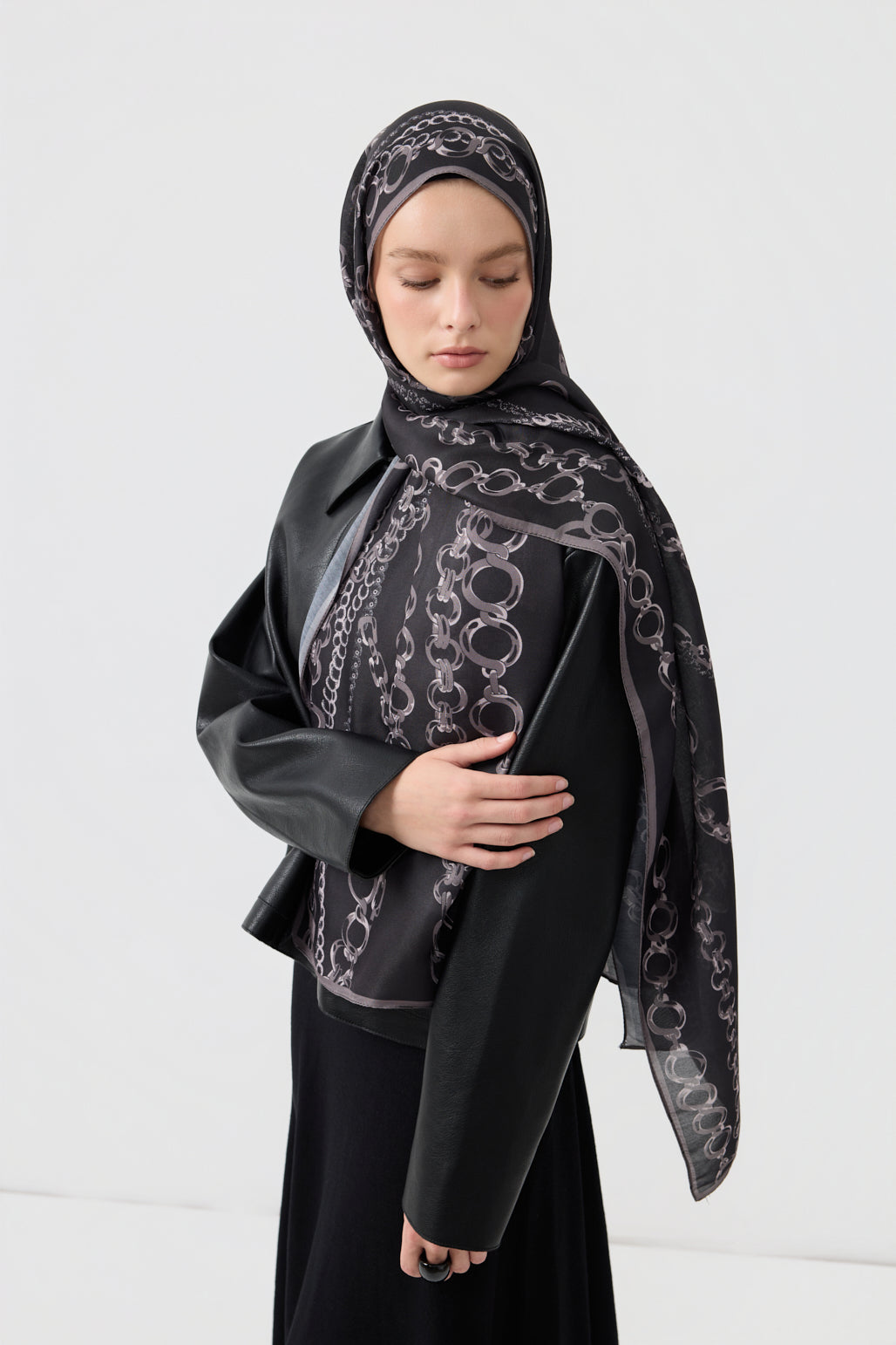 The Cotton Twill Loop Line Scarf redefines elegance with its modern circular line patterns and fluid twill texture, combining style with effortless comfort. The premium cotton fabric offers a lightweight and breathable feel, gently touching the skin for lasting freshness throughout the day.