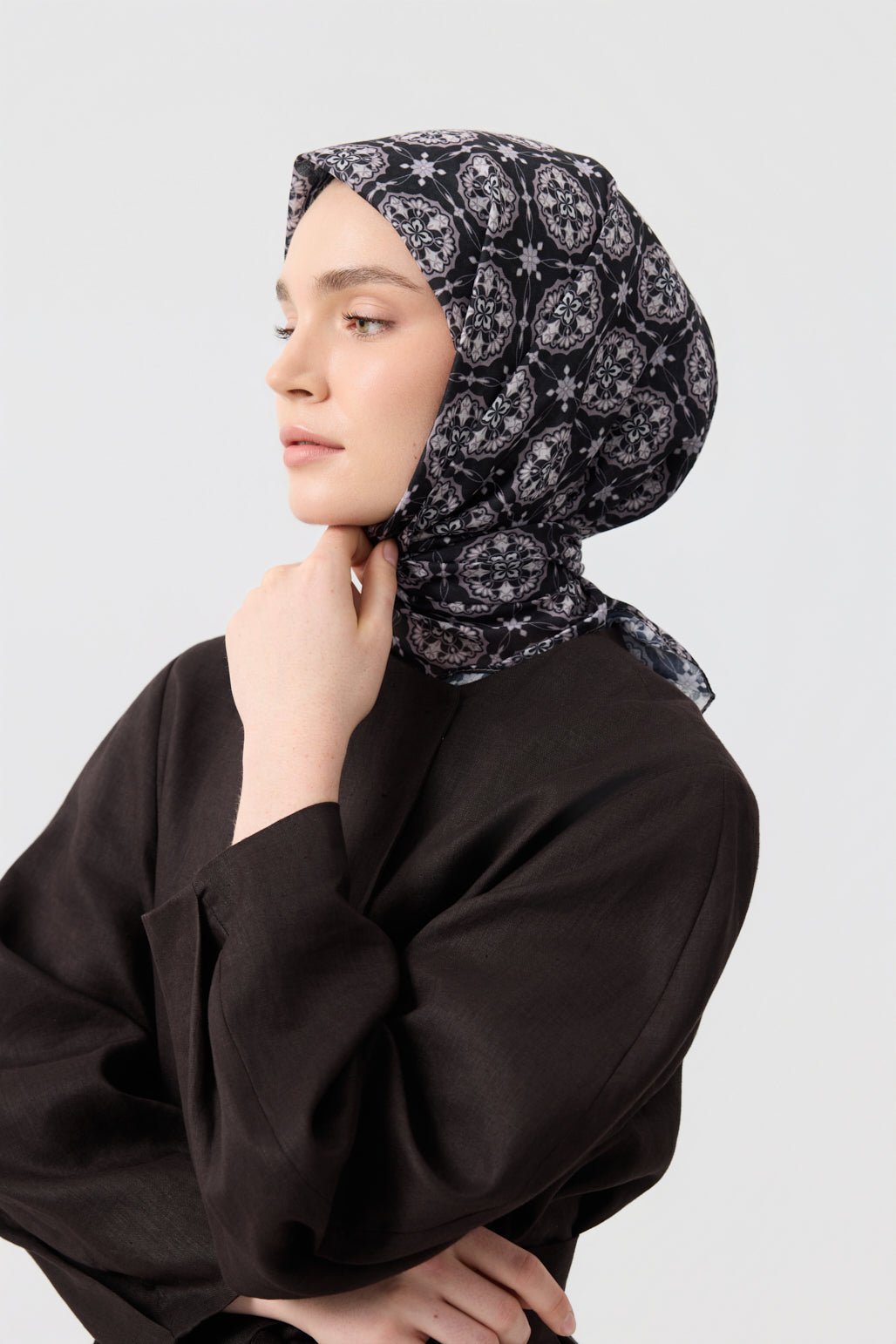 The Patterned Cotton Scarf - Medallion Pattern Series stands out with its authentic and symbolic design details inspired by classic motifs. Intricate lines and geometric transitions bring a sophisticated dynamism to the series, while the motifs add depth and character to the overall design of the scarf.