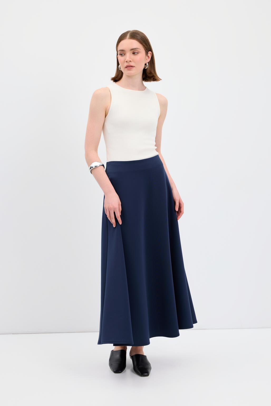 The Scuba Fabric Flared Midi Skirt is a durable and stylish piece made from unbreakable scuba fabric. Its high-waist design creates an elegant silhouette, while the wide flared cut allows freedom of movement. The zip closure ensures easy wear. Perfect for both casual and special outfits, this skirt is a standout addition to any wardrobe.