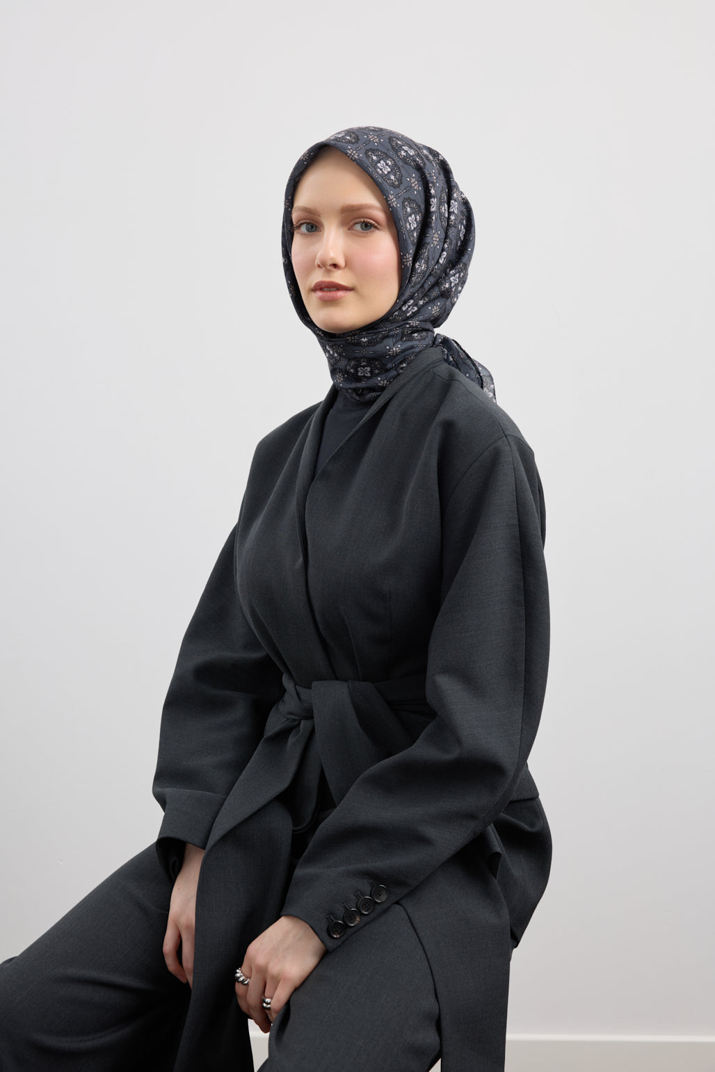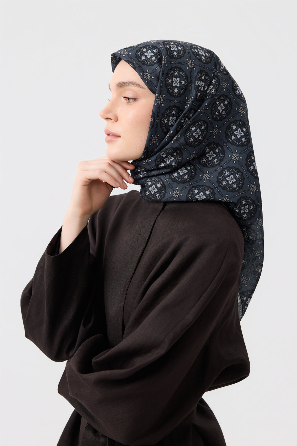 Cotton Square Scarf Medallion Smoke Grey