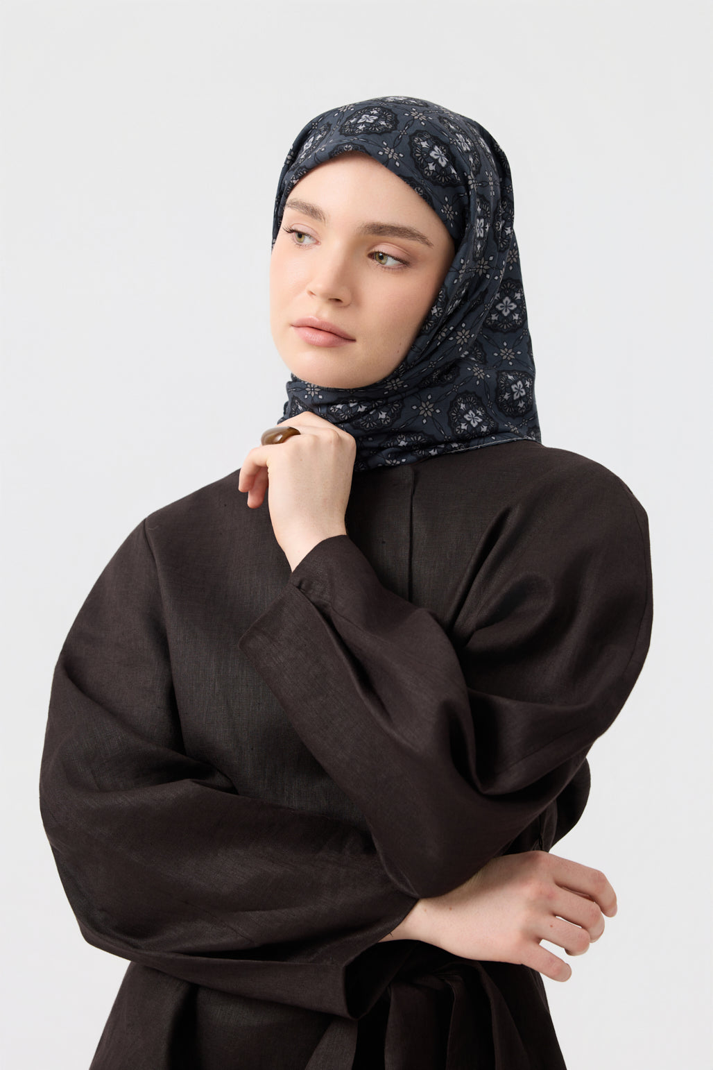 The Patterned Cotton Scarf - Medallion Pattern Series stands out with its authentic and symbolic design details inspired by classic motifs. Intricate lines and geometric transitions bring a sophisticated dynamism to the series, while the motifs add depth and character to the overall design of the scarf.