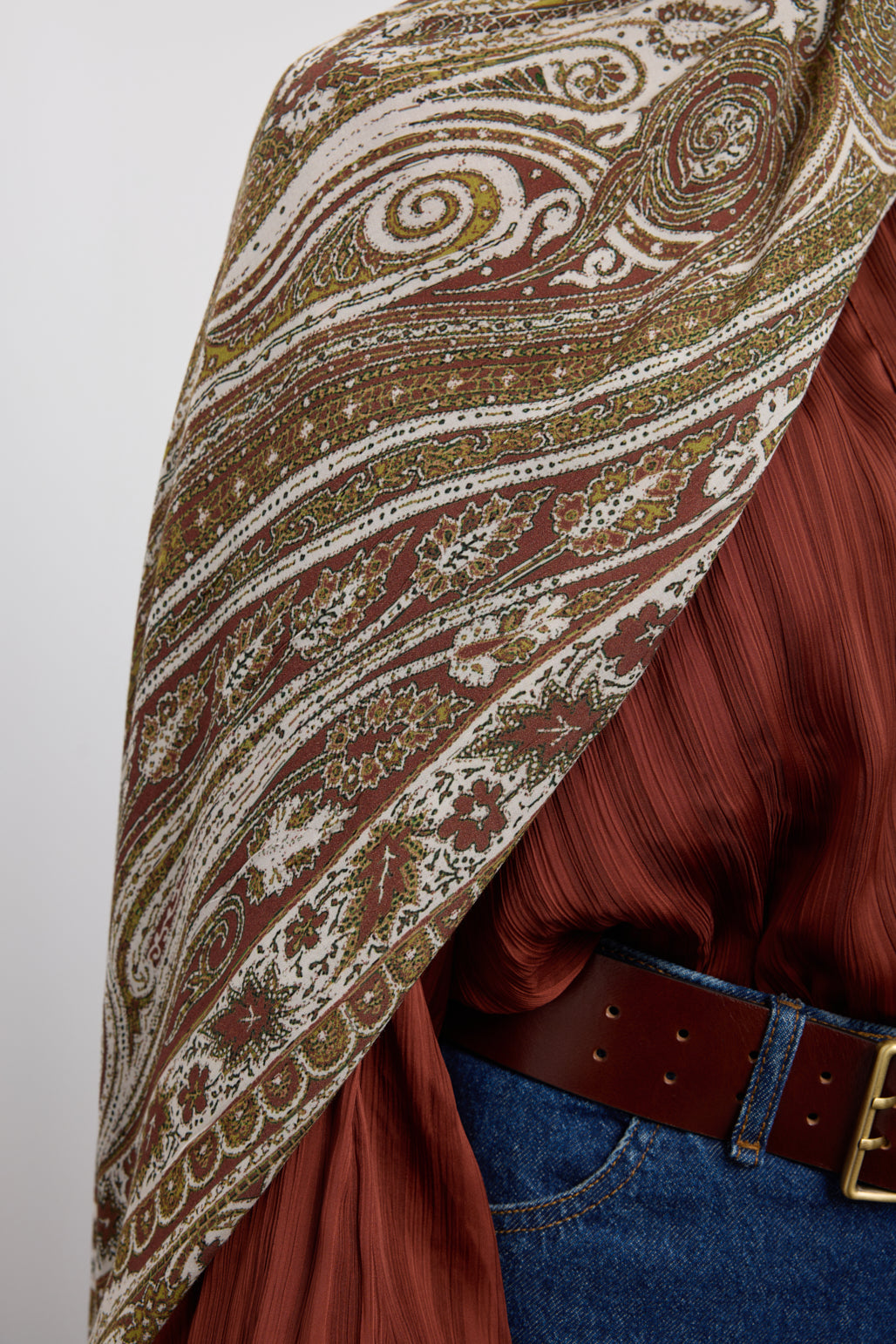 The Deluxe Summer patterned shawl collection offers lightness and elegance throughout the day with its delicate texture, soft fabric, and refined patterns—perfect for warm-weather styling. Made from a silk-viscose blend, these shawls are both airy and fluid, offering breathable comfort and effortless draping during the hottest days.