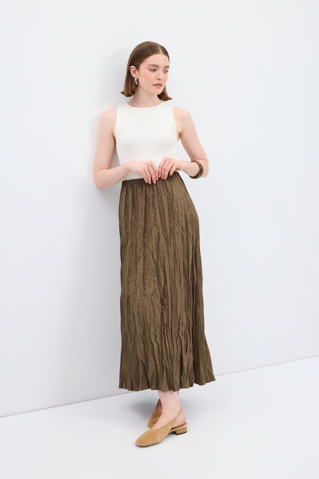 The Crinkle Effect Long Suede Skirt features a suede-look fabric with a crinkled texture, offering a stylish and textured appearance. The fully elasticated waistband ensures all-day comfort, while the straight cut creates a simple and practical silhouette. Its lightweight and flexible design makes it perfect for both everyday and special occasion outfits.