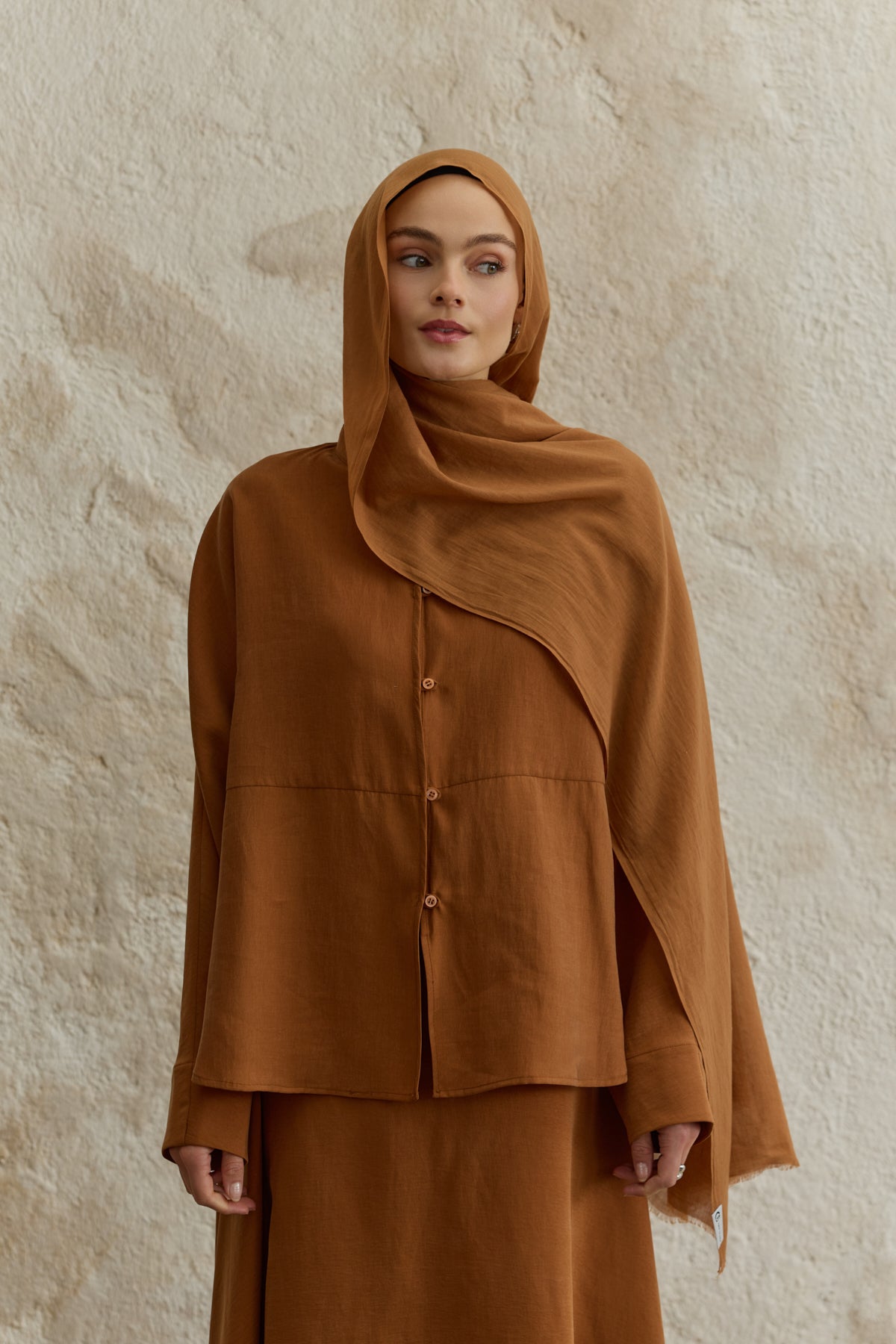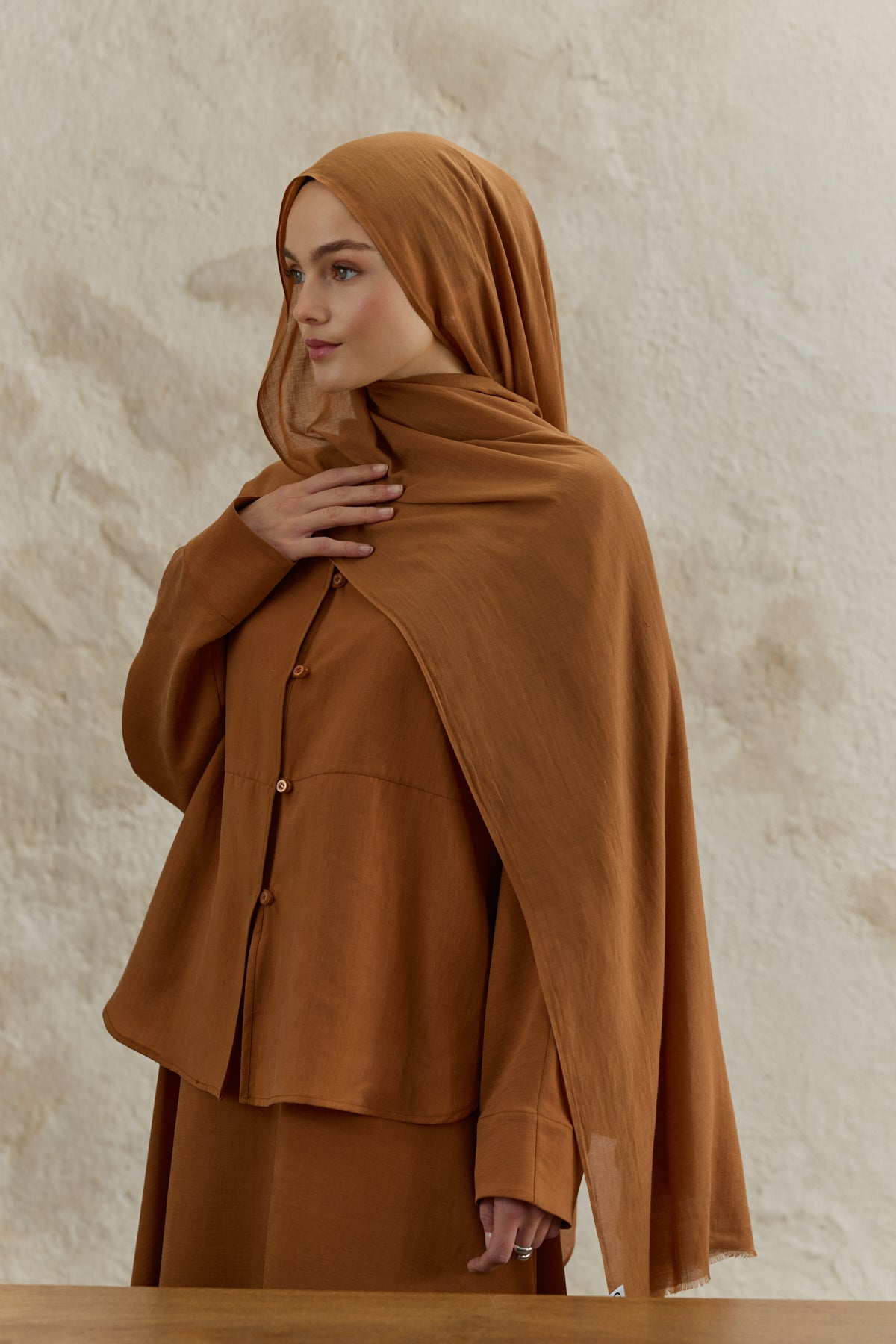 The Soft Line Cotton Shawl prioritizes comfort with the softness of its special cotton-blend texture. Thanks to its wide design, it can also be used in a double layer when desired, enhancing ease of use while adapting to different styles. Its non-slip and non-iron fabric makes it ideal for both everyday wear and special outfits, helping your style look polished and elegant at all times.