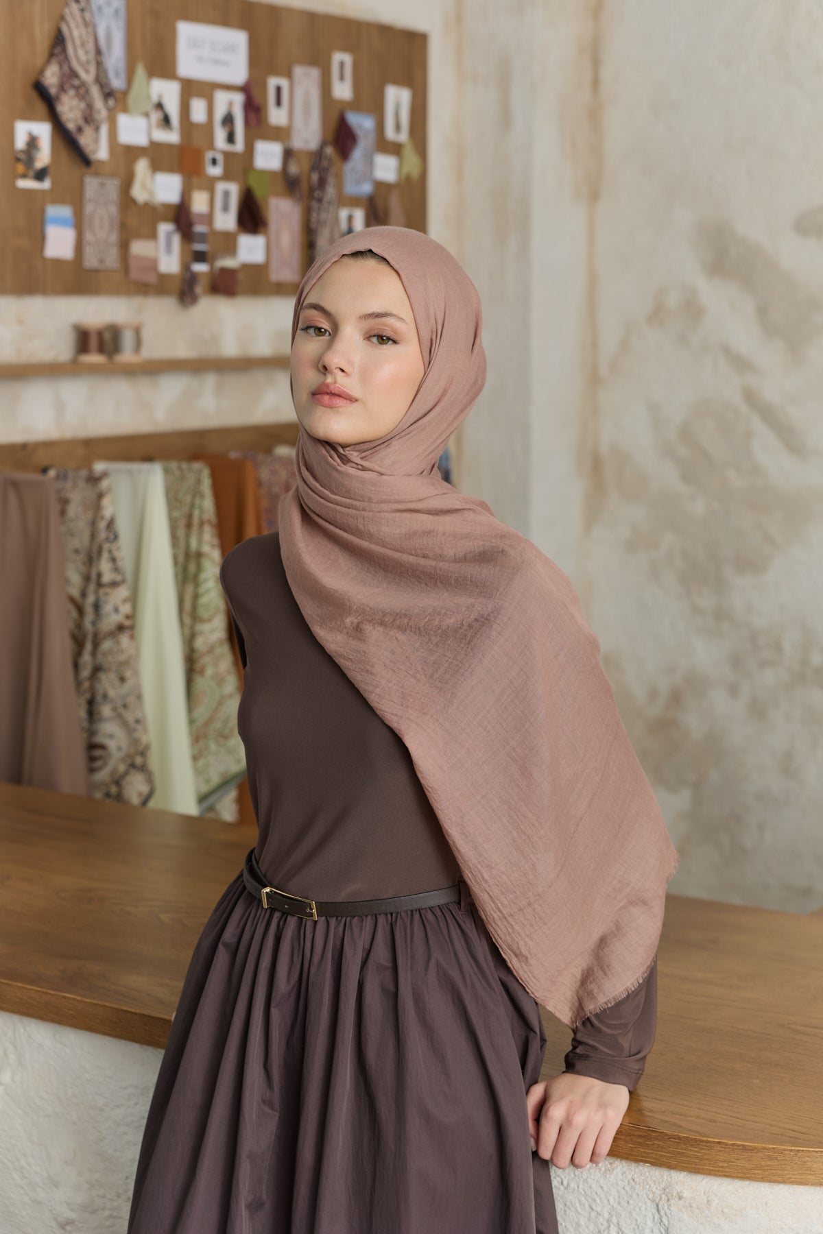 The Soft Line Cotton Shawl prioritizes comfort with the softness of its special cotton-blend texture. Thanks to its wide design, it can also be used in a double layer when desired, enhancing ease of use while adapting to different styles. Its non-slip and non-iron fabric makes it ideal for both everyday wear and special outfits, helping your style look polished and elegant at all times.
