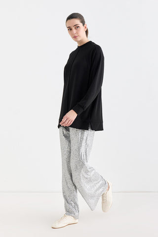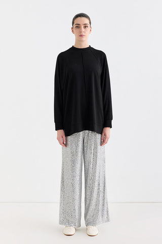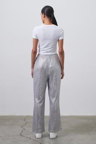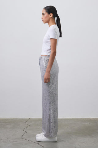 Sequin Embroidered Loose Trousers in silver combine elegance and comfort, allowing you to keep up with fashion trends. Color your day with combinations that reflect your style.