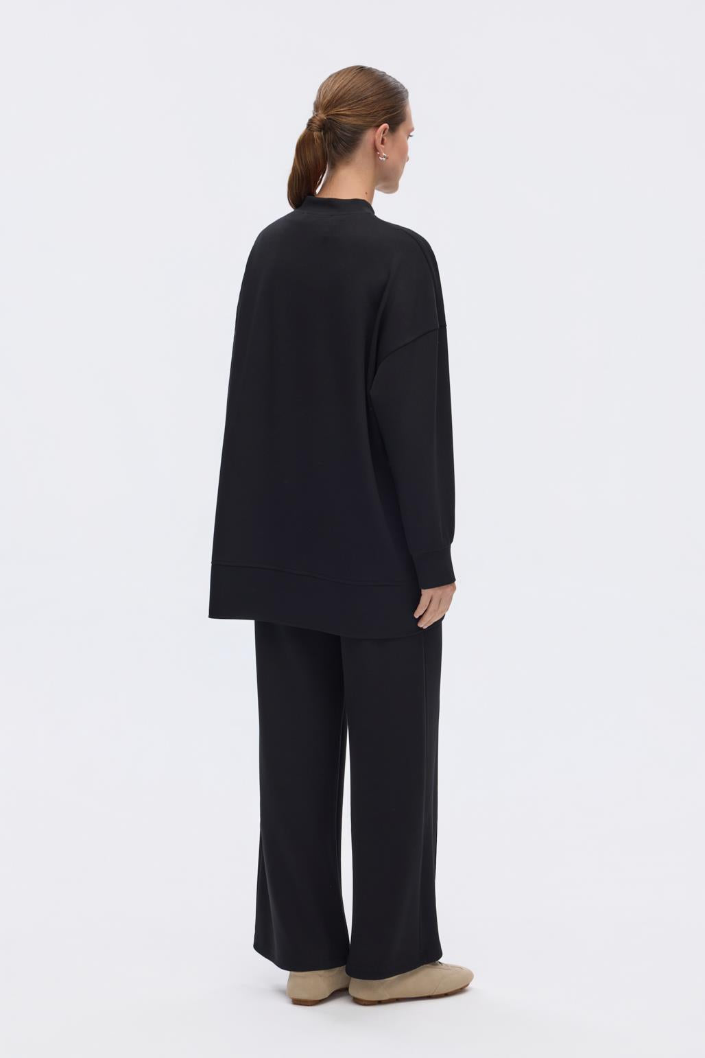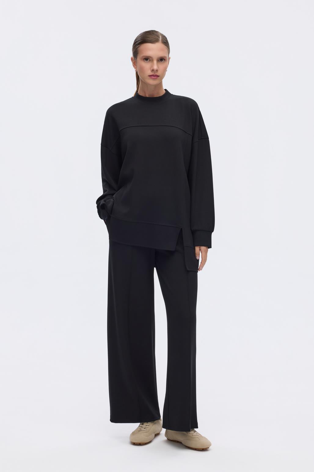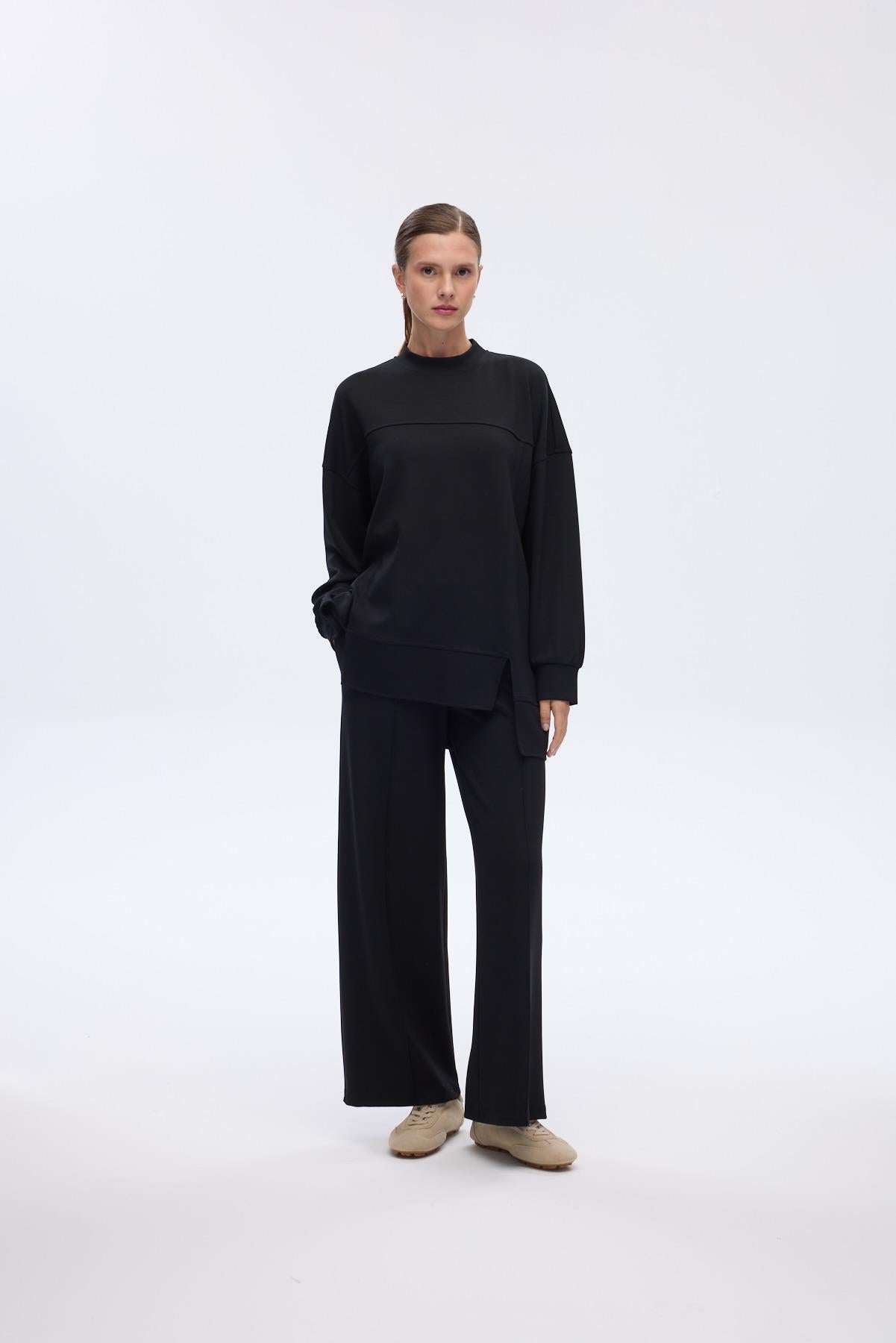 Modal knitted asymmetrical cut smoked sweatshirt elevates your style while feeling comfortable all day long with its breathable fabric and fits perfectly with both daily and stylish combinations. It will be one of the indispensable items in your wardrobe.