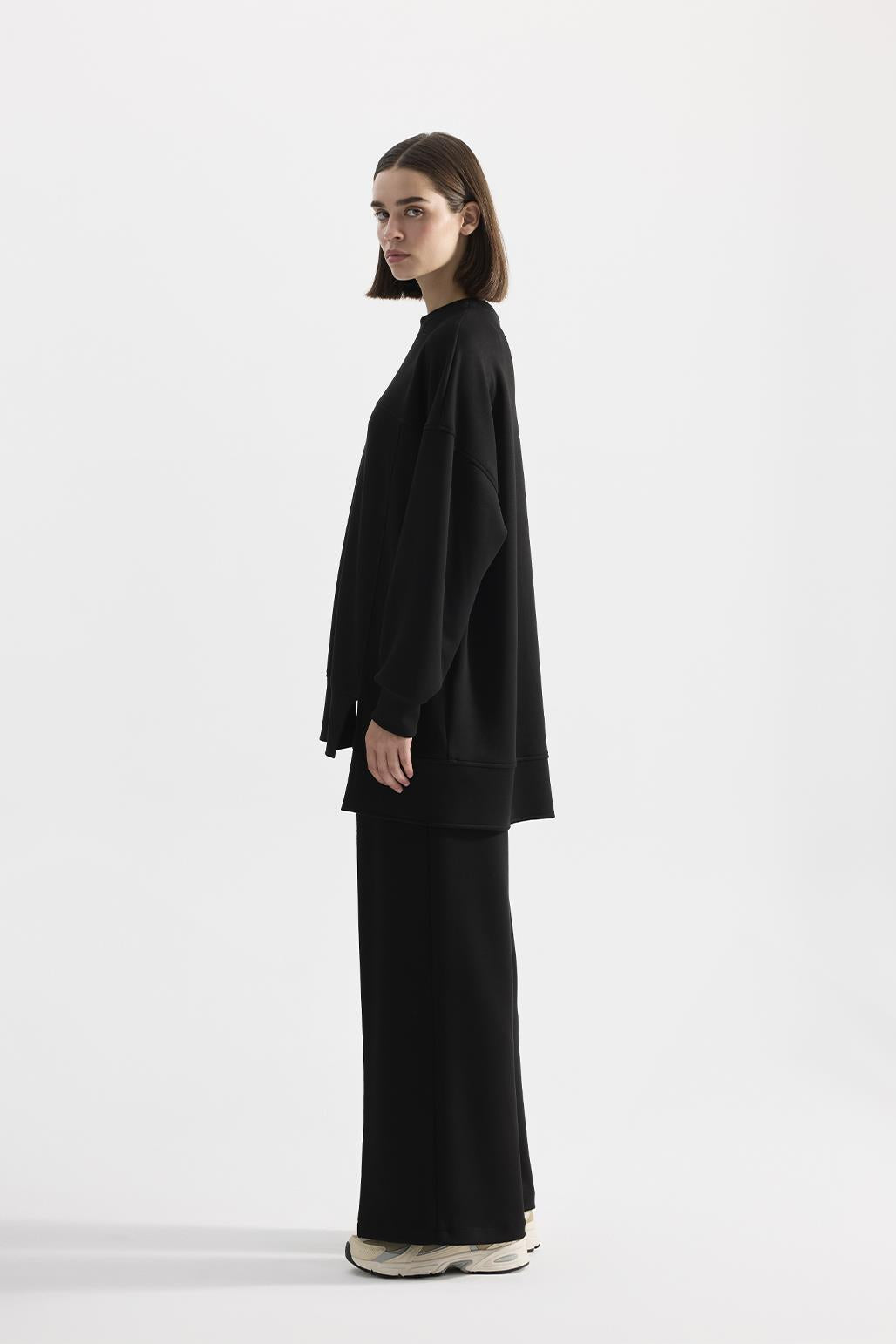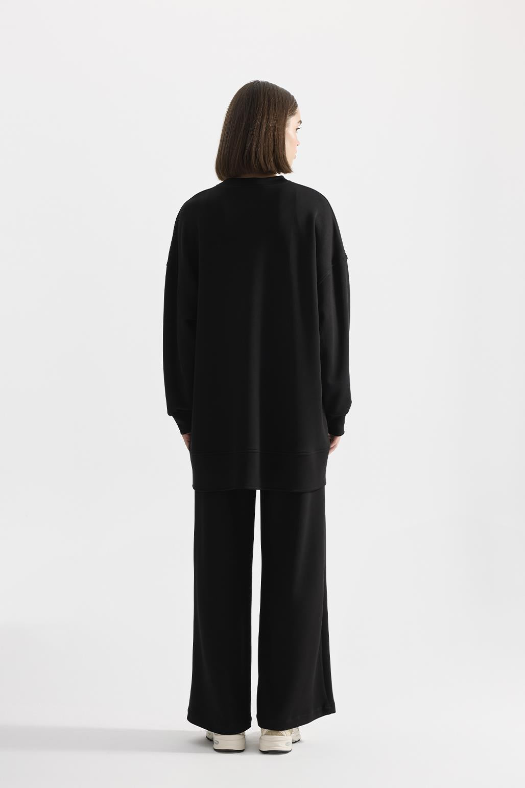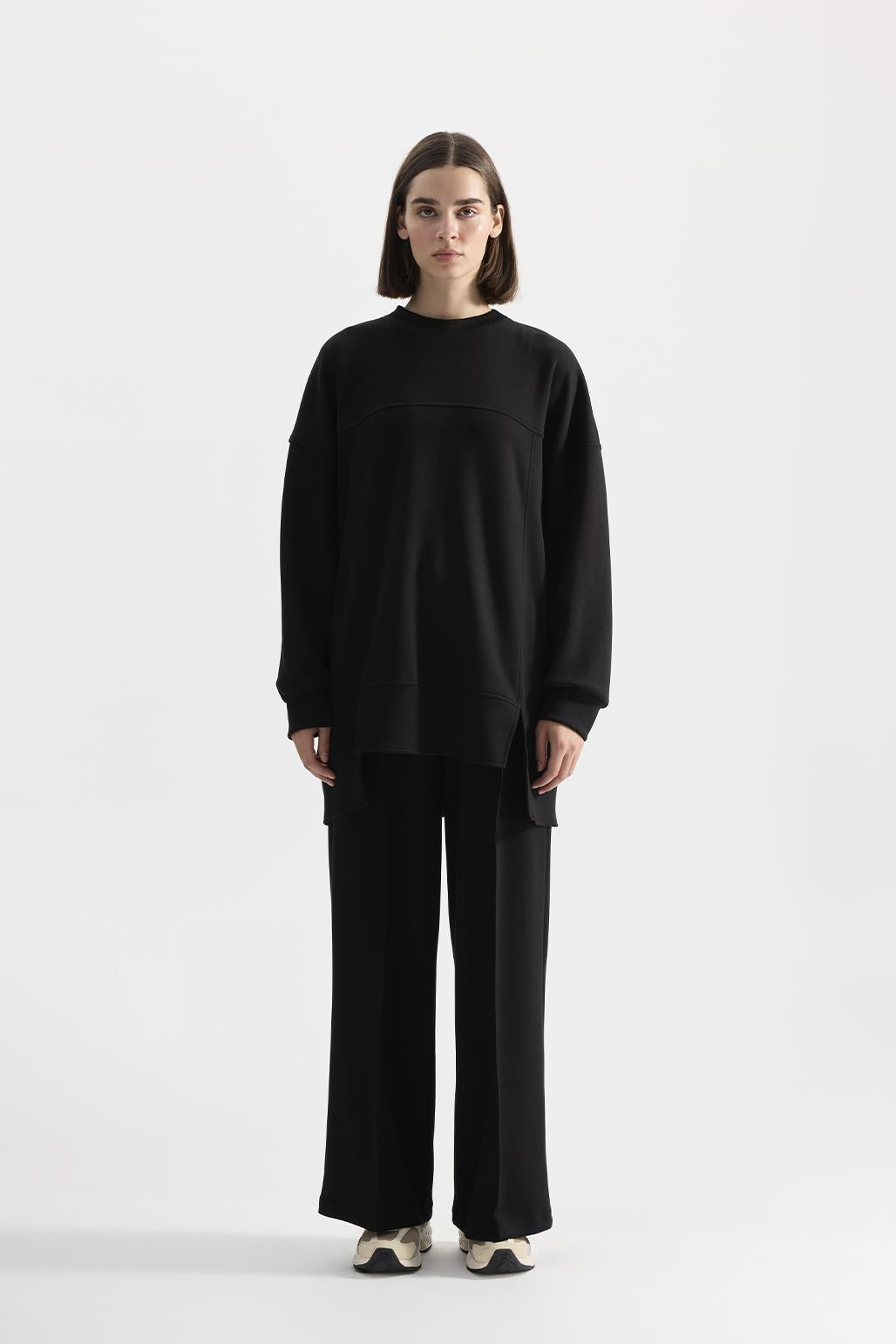 Modal knitted asymmetrical cut smoked sweatshirt elevates your style while feeling comfortable all day long with its breathable fabric and fits perfectly with both daily and stylish combinations. It will be one of the indispensable items in your wardrobe.