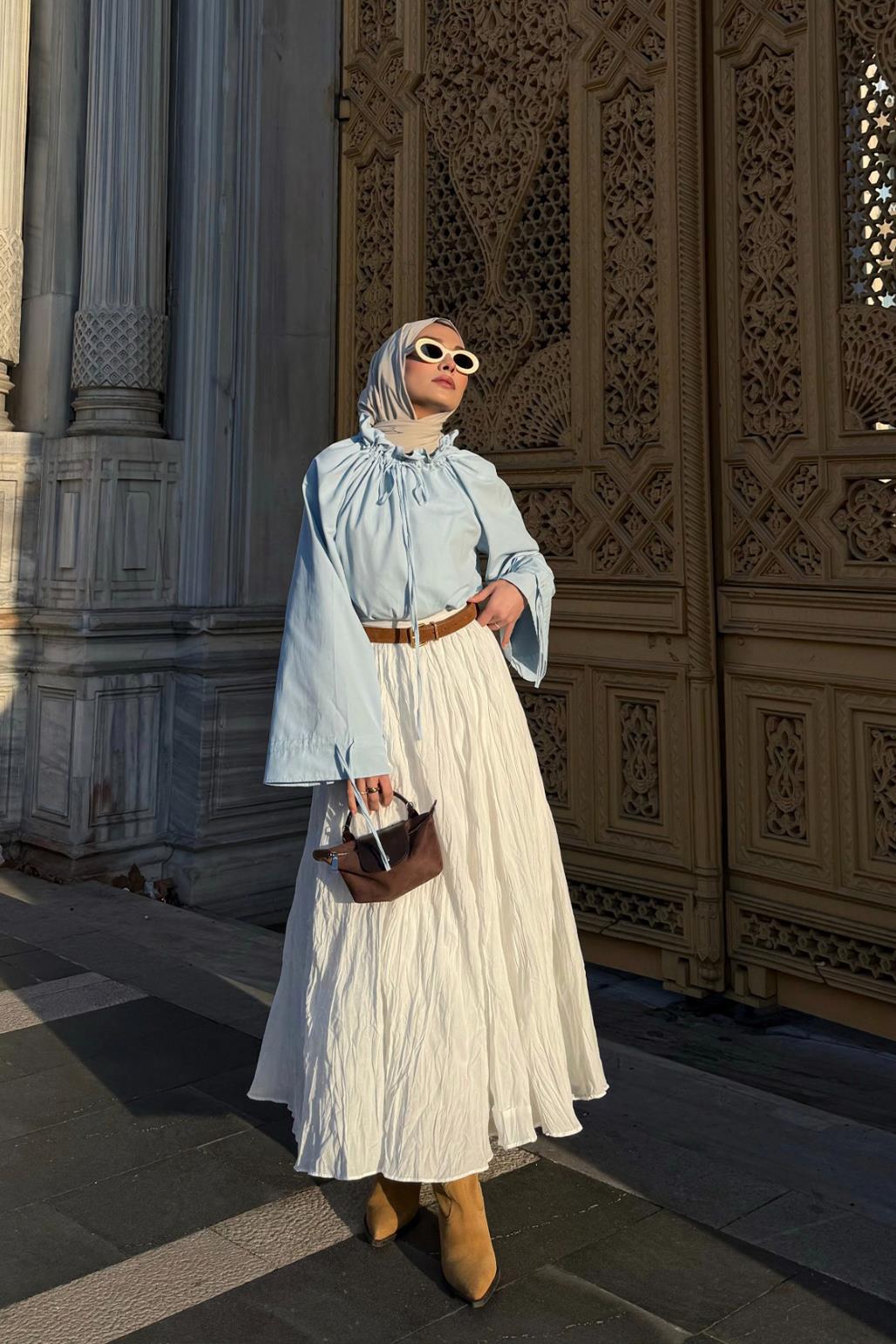 The Nora Pleated Long Skirt is crafted from lightweight, breathable cotton fabric, providing all-day comfort. Its pleated, flowing design offers both elegance and freedom of movement. The belt at the waist gently contours to the body, creating a flattering silhouette, while the back zipper ensures easy wear. The lined construction adds extra comfort. For a casual look, pair it with a blouse for a simple style, or elevate it with a chic shirt for special occasions. With its timeless design, this skirt is destined to become a wardrobe staple!