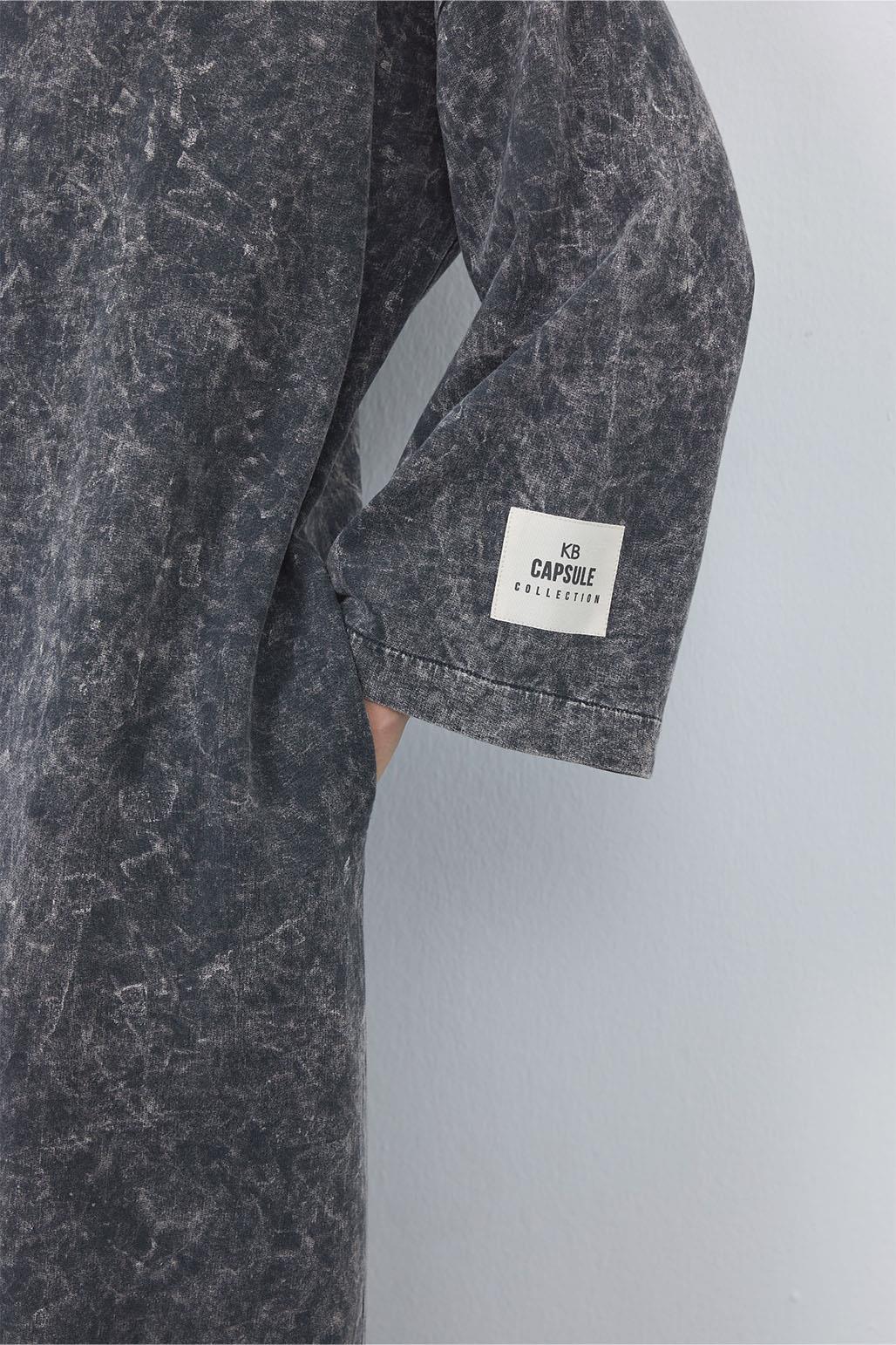 The faded effect dress, smoked, can be used in all seasons thanks to its cotton breathable fabric. It will be a must-have in your wardrobe thanks to its long, comfortable cut and timeless form.