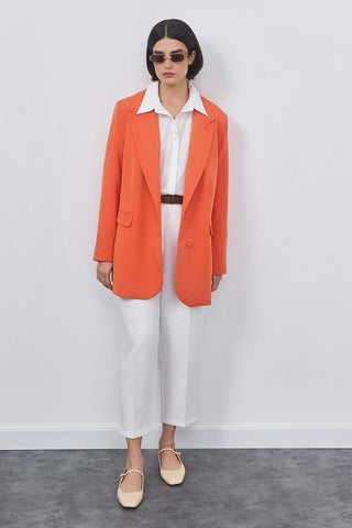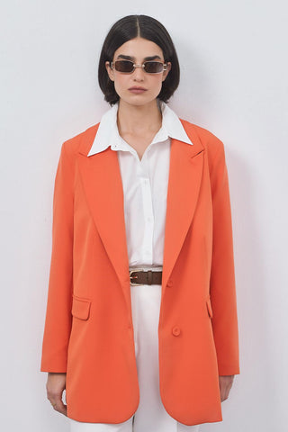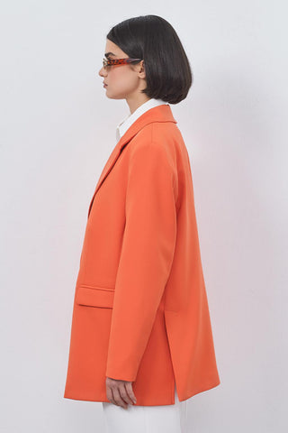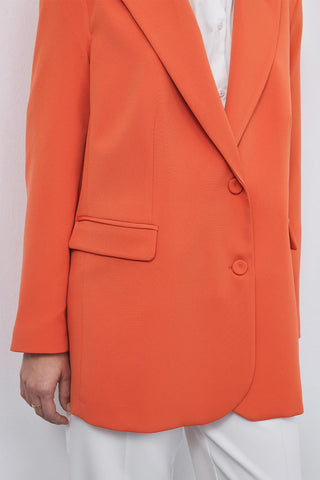 The Alina Blazer with slits in apricot, featuring stylish slits, brings a contemporary flair with its sleek detail, offering a distinctive look with its masculine cut. It's a must-have staple in your closet, exuding timeless sophistication that sets it apart.