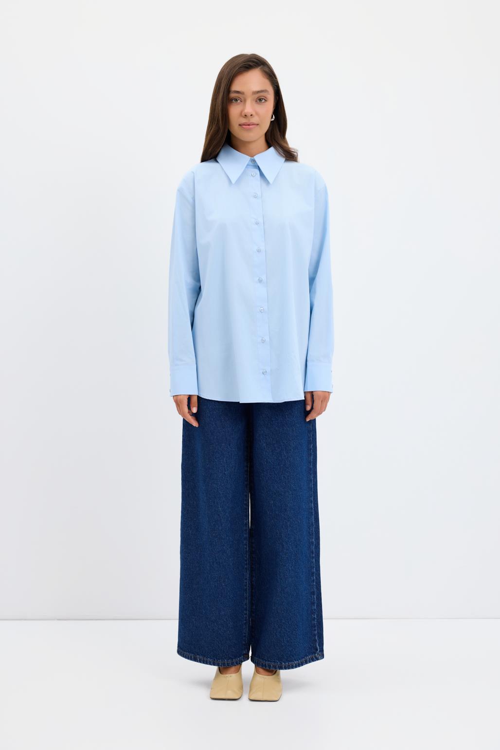 The Cotton Basic Shirt is crafted from a cotton-blend poplin fabric, offering a breathable and lightweight structure. With its classic collar, button closure, and box-cut oversized fit, it helps you create a modern and relaxed style.