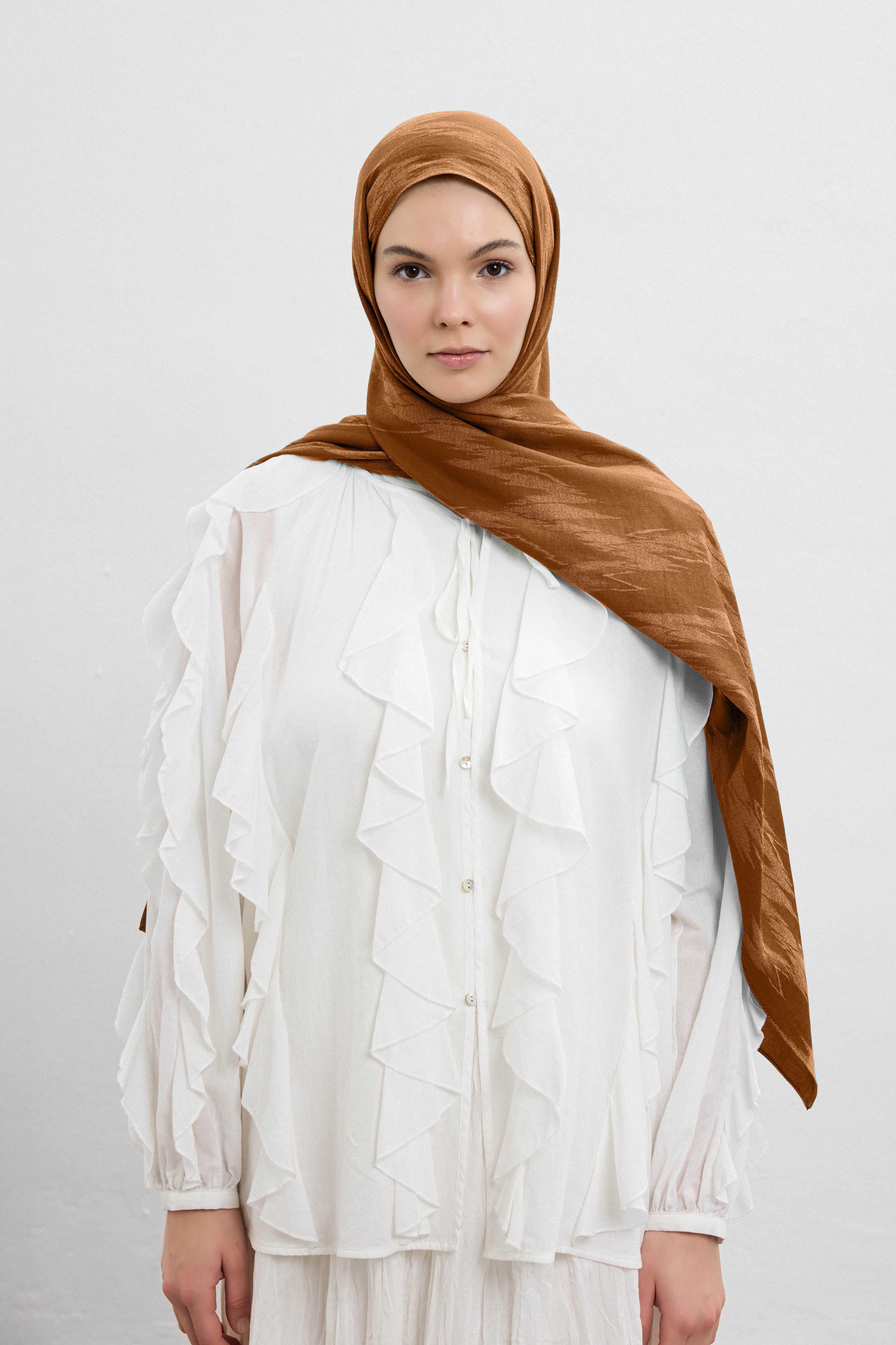 With its gentle touch and subtle sheen, the Cotton Line shawl brings together sophistication and simplicity. The color palette is enriched with soft, muted tones that effortlessly complement both everyday outfits and refined occasions. From classic looks to casual chic, this shawl is a versatile essential in any modest wardrobe.