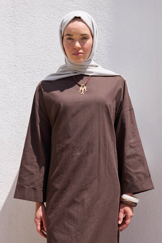 With its gentle touch and subtle sheen, the Cotton Line shawl brings together sophistication and simplicity. The color palette is enriched with soft, muted tones that effortlessly complement both everyday outfits and refined occasions. From classic looks to casual chic, this shawl is a versatile essential in any modest wardrobe.