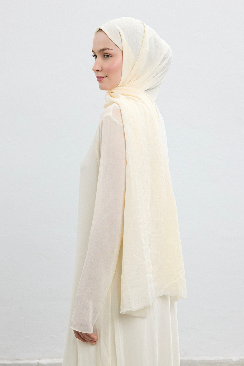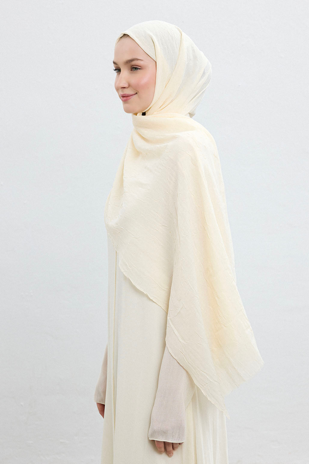 Cream Bamboo Shawl is made from natural bamboo fiber and offers all-day comfort with its lightweight and soft texture. Its naturally crinkled surface eliminates the need for ironing, making it an ideal choice for those seeking effortless elegance.