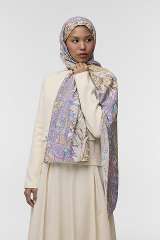 The Deluxe Silk-Cotton Patterned Scarf Collection offers a unique selection of scarves adorned with the elegance of Indian motifs, featuring a soft and lightweight texture that makes them perfect for year-round wear. These special patterns and color transitions add a fresh touch to your style, even when paired with basic pieces. They are an ideal choice to bring a distinctive and stylish look to both your everyday life and special moments. The cotton-silk blend combines comfort and aesthetics, perfectly complementing any outfit, while the carefully selected colors and designs add a special touch to every occasion.
