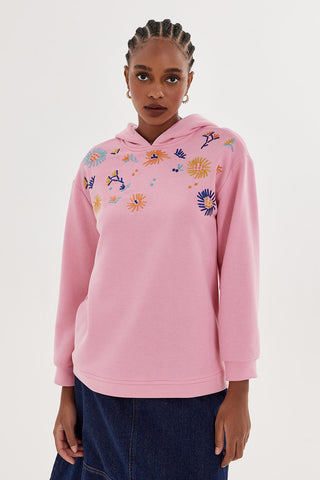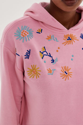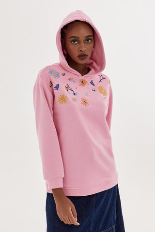 This sweatshirt boasts exquisite flower embroidery, each detail meticulously crafted to add a touch of elegance and femininity to your ensemble. Designed with a self-fabric skirt, it combines style and comfort seamlessly, ensuring a cohesive and fashionable look. The ribbed cuffs add a classic finish while providing a snug and cozy fit.
