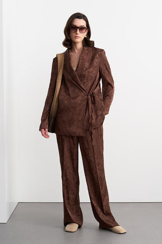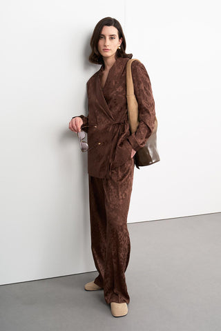 The Galia Jacquard Jacket Pants Suit offers modern and timeless elegance with its soft cotton-blend fabric. The delicate jacquard patterns make it perfect for standing out on special occasions, while the set creates a flawless coordinated look. Pair the blazer with jeans for a casual style, or combine the trousers with a simple blouse for a different appearance. This set, which can be styled both together or separately, will become one of the strongest pieces in your wardrobe.