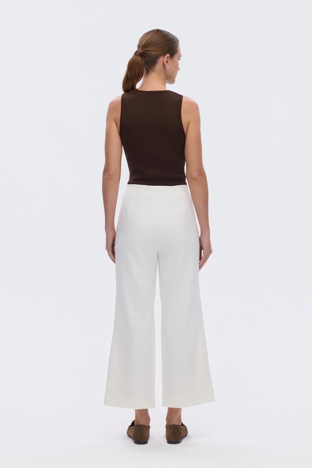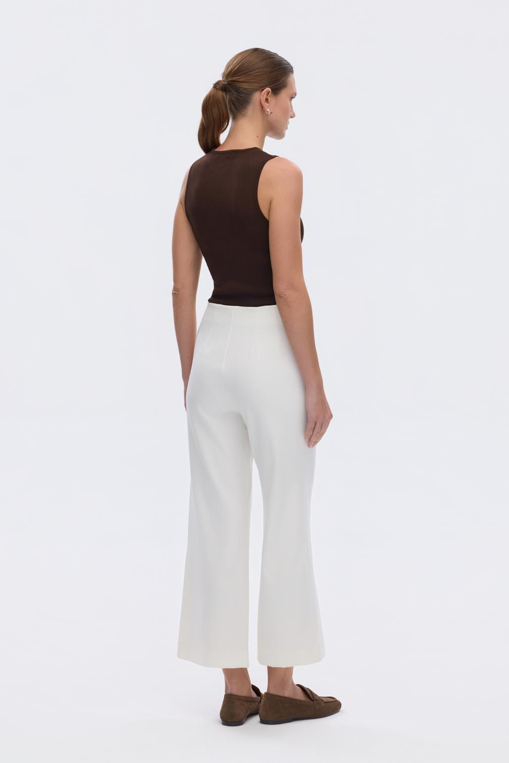 The High Waist Fit Crepe Trousers are crafted from stretchy double crepe fabric, offering both comfort and an elegant silhouette. The high-waist design provides a flattering fit, while ribbed seam details add a modern touch. Perfect for office outfits or casual daily wear, these trousers combine style with ease of movement.