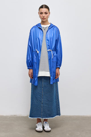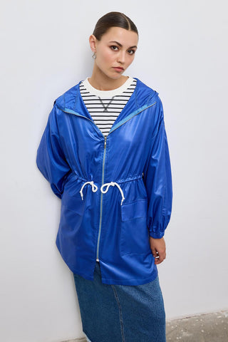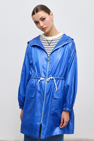 A perfect companion for braving the elements in style. This zip-front raincoat ensures easy closure, keeping you dry even in the heaviest downpour. The elasticized cuffs provide a snug fit around the wrists, preventing any unwanted moisture. Complete with a convenient hood, this raincoat offers extra protection from the rain, ensuring you stay comfortable and dry no matter the weather.