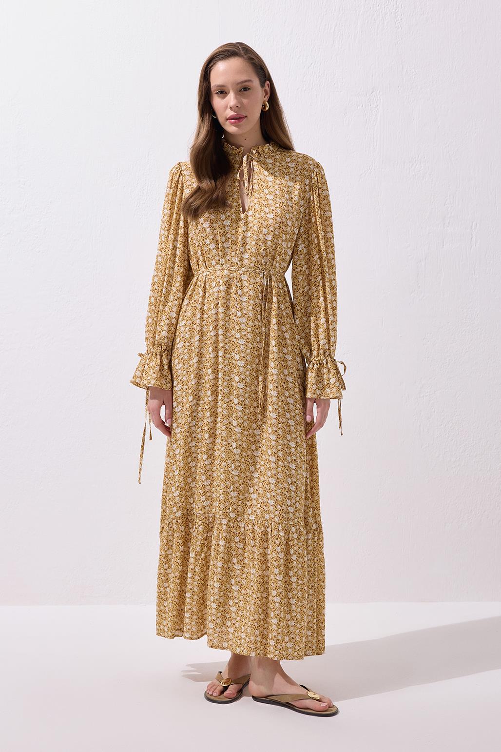 The Lou Viscose Maxi Dress in Yellow offers a feminine touch with its V-neckline and delicate ruffle details. The asymmetrical hem adds a modern feel, while the adjustable drawstrings on the wide sleeves enhance its elegant look. The sleeve cuffs can also be adjusted, offering both comfort and a personalized fit. Made from lightweight, breathable viscose, it’s perfect for all-day wear. For a stylish daytime look, pair it with a chic belt and sandals to create the perfect summer outfit. For evening events, complete your look with heels and a minimal clutch for a more sophisticated vibe. A beautiful piece that reflects effortless summer elegance and comfort.