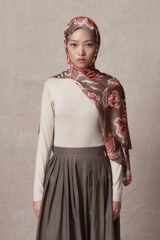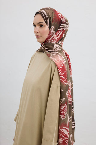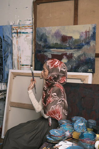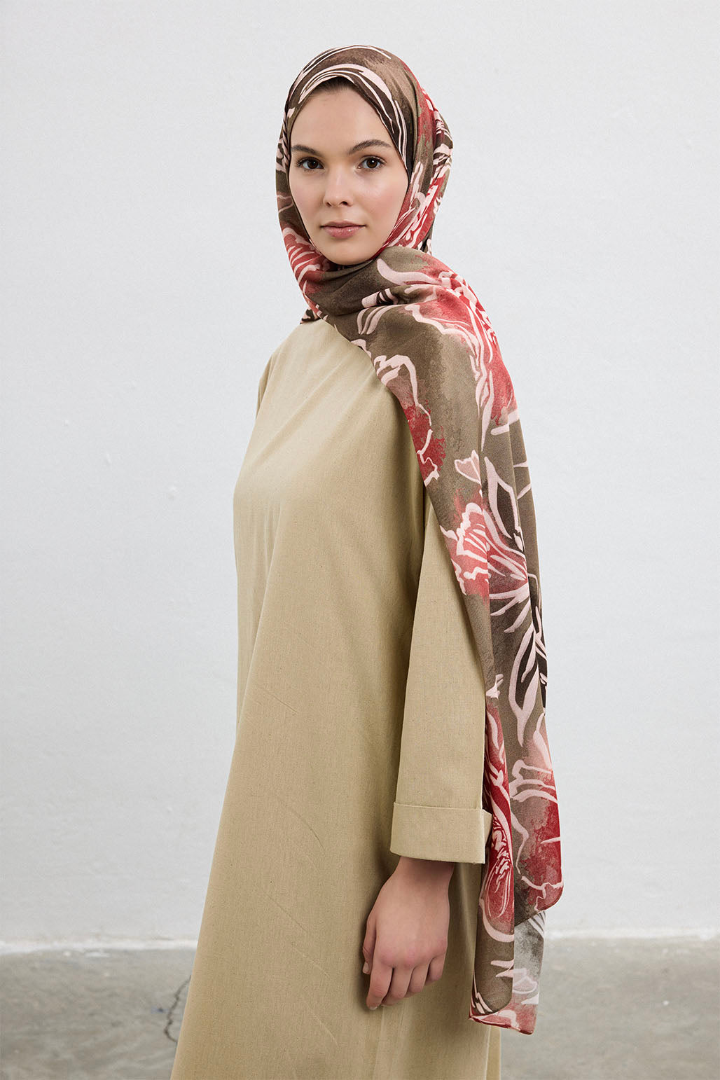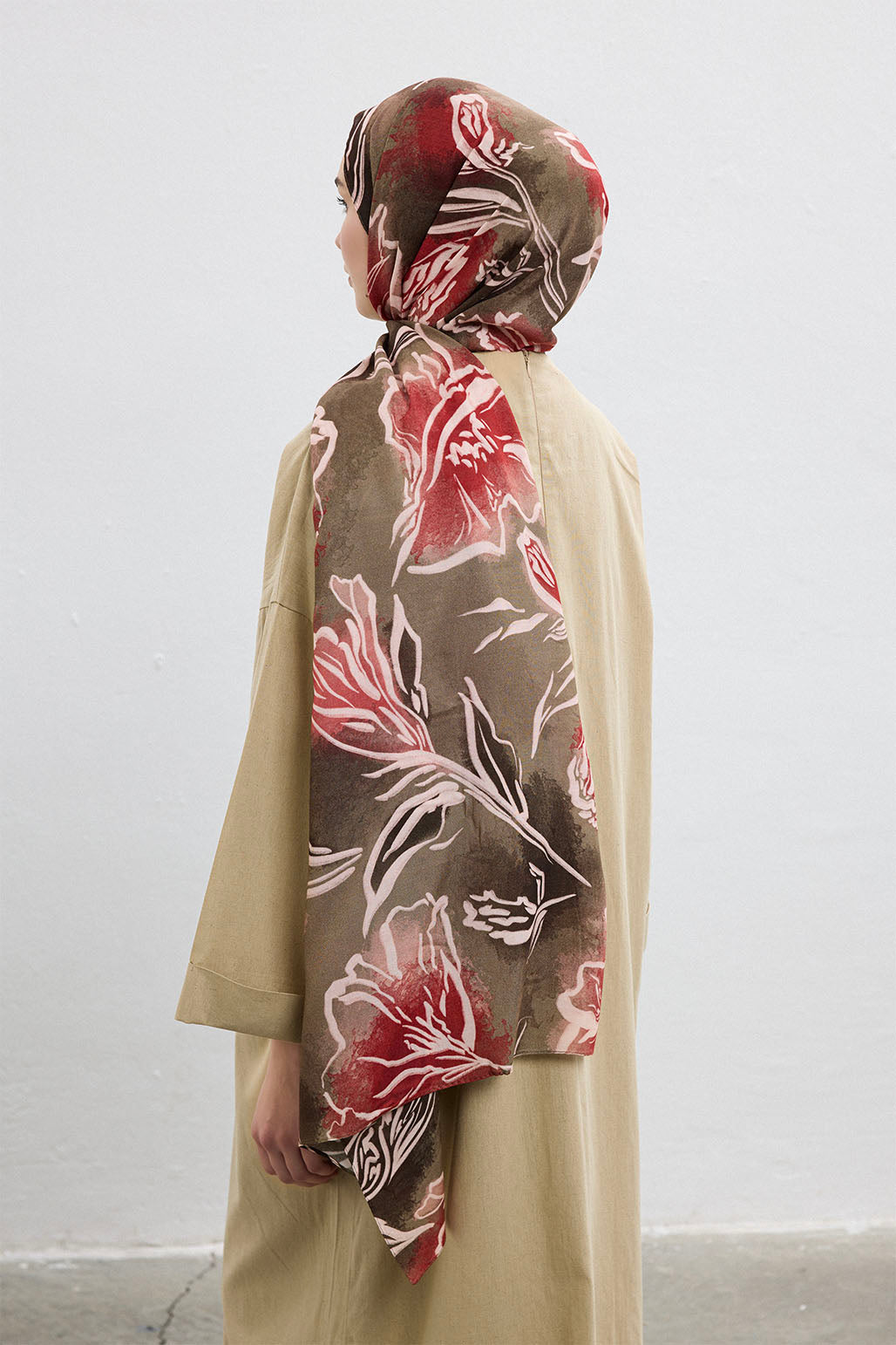 The Patterned Modal Brush Shawl features distinctive designs inspired by the intersection of imagination and dreams, captured through a painter's creativity. The patterns, enhanced by vivid brush strokes and intricate details, are one-of-a-kind works of art, each conveying a unique story. Every detail reflects the artist's personal interpretation, creating a striking visual aesthetic reminiscent of a canvas painting. Crafted from soft modal fabric, this shawl offers both elegance and comfort.