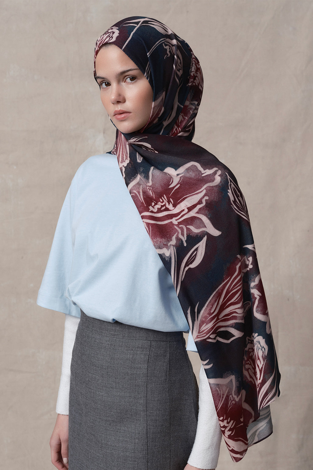 The Patterned Modal Brush Shawl features distinctive designs inspired by the intersection of imagination and dreams, captured through a painter's creativity. The patterns, enhanced by vivid brush strokes and intricate details, are one-of-a-kind works of art, each conveying a unique story. Every detail reflects the artist's personal interpretation, creating a striking visual aesthetic reminiscent of a canvas painting. Crafted from soft modal fabric, this shawl offers both elegance and comfort.