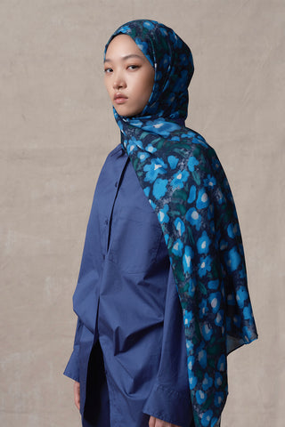 The Patterned Modal Brush Shawl features distinctive designs inspired by the intersection of imagination and dreams, captured through a painter's creativity. The patterns, enhanced by vivid brush strokes and intricate details, are one-of-a-kind works of art, each conveying a unique story. Every detail reflects the artist's personal interpretation, creating a striking visual aesthetic reminiscent of a canvas painting. Crafted from soft modal fabric, this shawl offers both elegance and comfort.