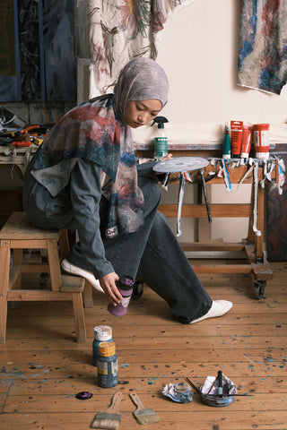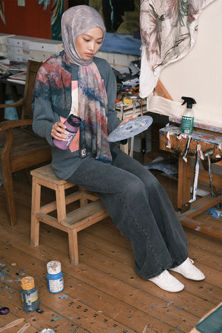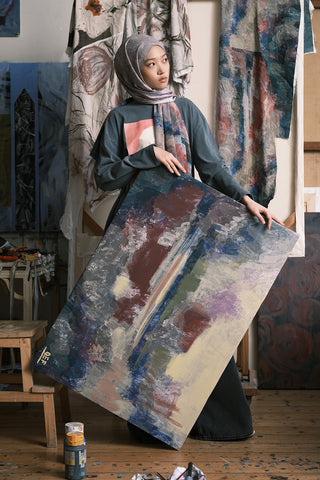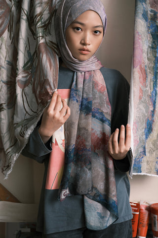 The Patterned Modal Brush Shawl features distinctive designs inspired by the intersection of imagination and dreams, captured through a painter's creativity. The patterns, enhanced by vivid brush strokes and intricate details, are one-of-a-kind works of art, each conveying a unique story. Every detail reflects the artist's personal interpretation, creating a striking visual aesthetic reminiscent of a canvas painting. Crafted from soft modal fabric, this shawl offers both elegance and comfort.