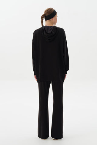The Modal Knit Hooded Oversized Sweatshirt offers comfort throughout the day with its ultra-soft and stretchy modal fabric. Its modern and minimalist design is enhanced with details, while practical features like the hood and kangaroo pocket make it stand out. This sweatshirt provides easy wearability, whether paired with leggings for a sporty look or with jeans and sneakers for a street style vibe. A must-have piece for those seeking both elegance and comfort in their wardrobe!
