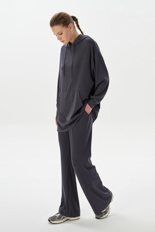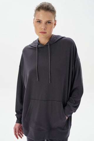 Modal Knit Hooded Oversized Sweatshirt Charcoal