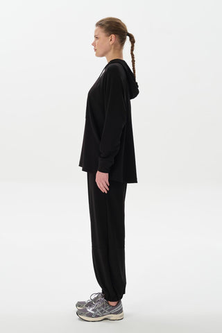 The Modal Knit Hooded Sweatshirt offers all-day comfort with its soft texture made from a natural modal blend. Its relaxed fit and wide sleeve design allow for freedom of movement, creating a modern and minimalist style. The panel details on the front and the hood design enhance the sporty chic look. Pair it with jeans for a simple everyday outfit or with sweatpants for a sporty style. A perfect addition to your wardrobe for both functionality and style!