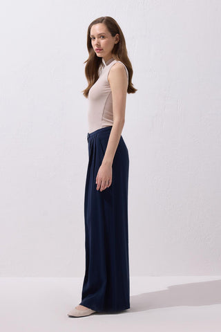 Modal Wide Leg Trousers Navy Blue