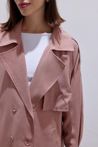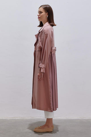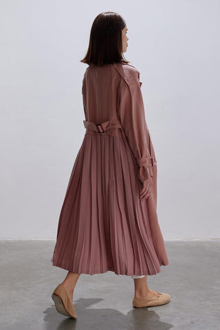 Pleated Modal Trench Coat Coral