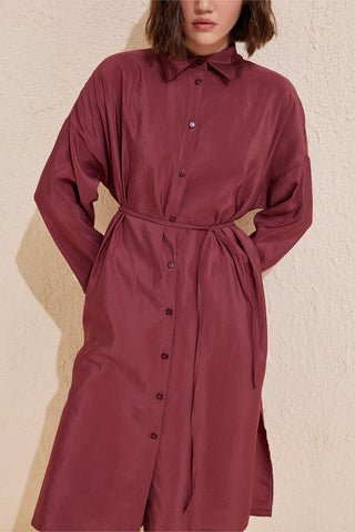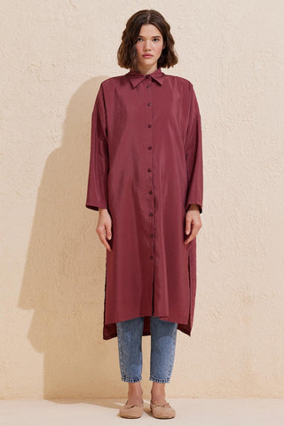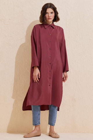 Rosa Long Slit Shirt Burgundy