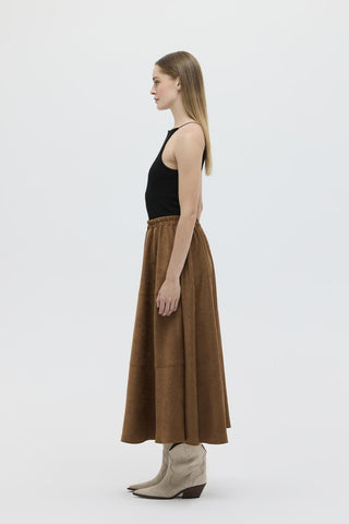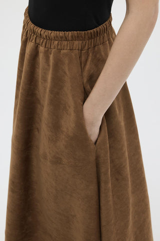Suede Flared Skirt with Stitch Detail Tan