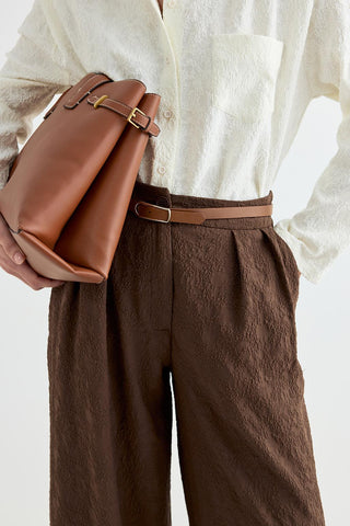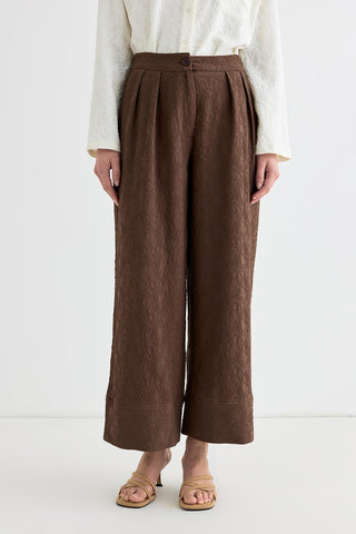The Textured Culotte Pants, made from specially woven cotton crinkle fabric, are designed to stand out in any setting. With a high-waist and elastic back design, they offer both comfort and a stylish fit. The wide-leg cut balances the body's curves while elongating the appearance of the legs. For everyday wear, pair them with a basic t-shirt for a relaxed look, or elevate the outfit with a chic shirt and blazer for a modern, elegant style on special occasions. With its timeless and minimalist design, this piece will become a staple in your wardrobe every season!
